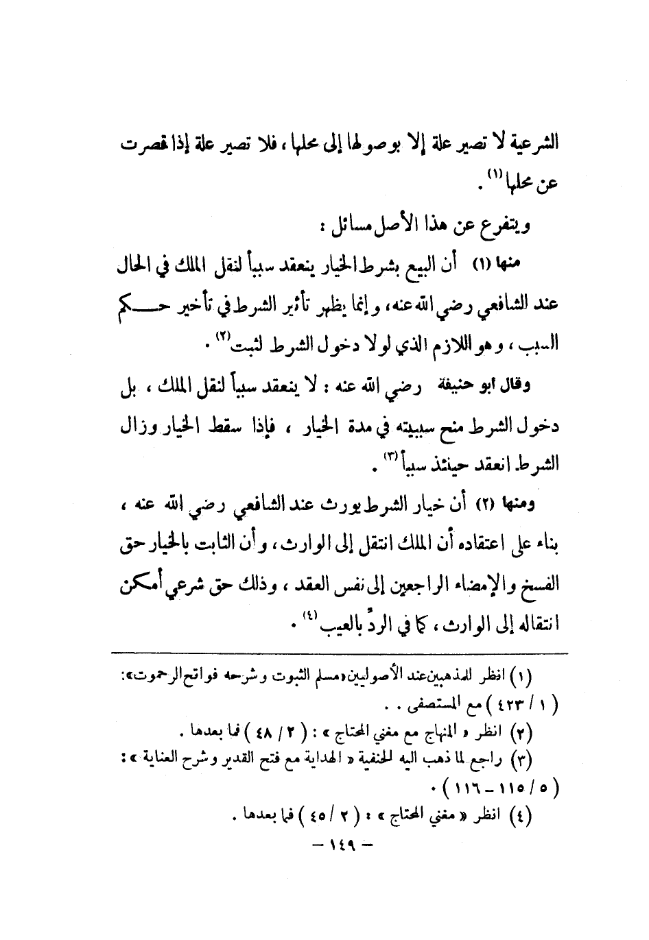 مِنْهَا إِن البيع بِشَرْط الْخِيَار ينْعَقد سَببا لنقل الْمَالِك فِي الْحَال عِنْد الشَّافِعِي رض وَإِنَّمَا يظْهر تَأْثِير الشَّرْط فِي تَأْخِير حكم السَّبَب وَهُوَ اللَّازِم الَّذِي لَوْلَا دُخُول الشَّرْط لثبت