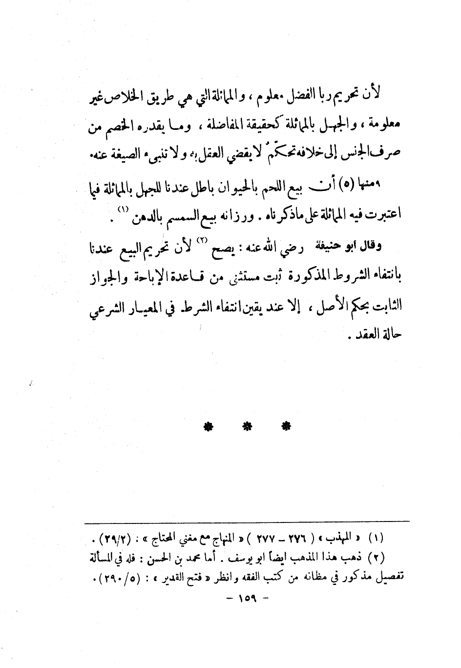 لِأَن تَحْرِيم رَبًّا الْفضل مَعْلُوم والمماثلة الَّتِي هِيَ طَرِيق الْخَلَاص غير مَعْلُومَة وَالْجهل بالمماثلة كحقيقة المفاضلة وَمَا يقدره الْخصم من صرف الْجِنْس إِلَى خِلَافه تحكم لَا يقْضِي الْعقل بِهِ وَلَا تنبىء الصِّيغَة عَنهُ