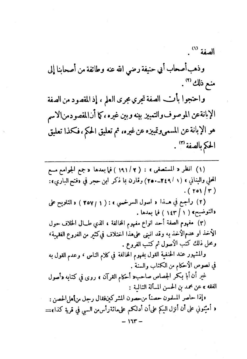 وَاحْتَجُّوا بَان الصّفة تجْرِي مجْرى الْعلم إِذْ الْمَقْصُود من الصّفة الْإِبَانَة عَن الْمَوْصُوف والتمييز بَينه وَبَين غَيره كَمَا أَن الْمَقْصُود من الِاسْم هُوَ الْإِبَانَة عَن الْمُسَمّى وتمييزه عَن غَيره ثمَّ تَعْلِيق الحكم فَكَذَا تَعْلِيق الحكم بِالصّفةِ