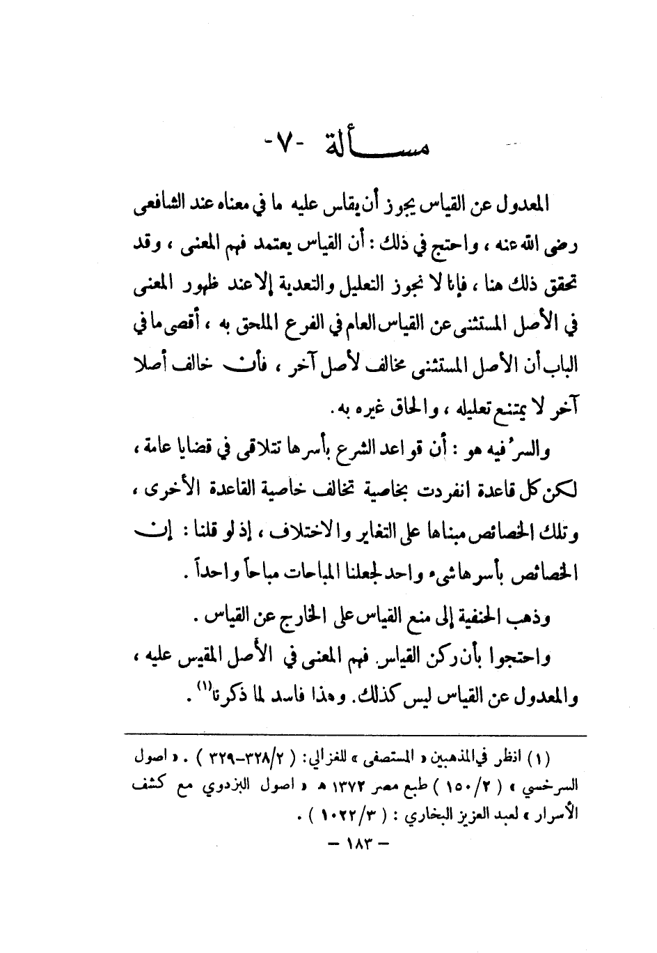 المعدول عَن الْقيَاس يجوز أَن يُقَاس عَلَيْهِ مَا فِي مَعْنَاهُ عِنْد الشَّافِعِي رض وَاحْتج فِي ذَلِك أَن الْقيَاس يعْتَمد فهم الْمَعْنى وَقد تحقق ذَلِك هُنَا فَإنَّا لَا نجوز التَّعْلِيل والتعدية إِلَّا عِنْد ظُهُور الْمَعْنى فِي الأَصْل الْمُسْتَثْنى عَن الْقيَاس الْعَام فِي الْفَرْع الملحق بِهِ أقْصَى مَا فِي الْبَاب أَن الأَصْل الْمُسْتَثْنى مُخَالف لأصل آخر فَأن خَالف أصلا آخر لَا يمْتَنع تَعْلِيله والحاق غَيره بِهِ