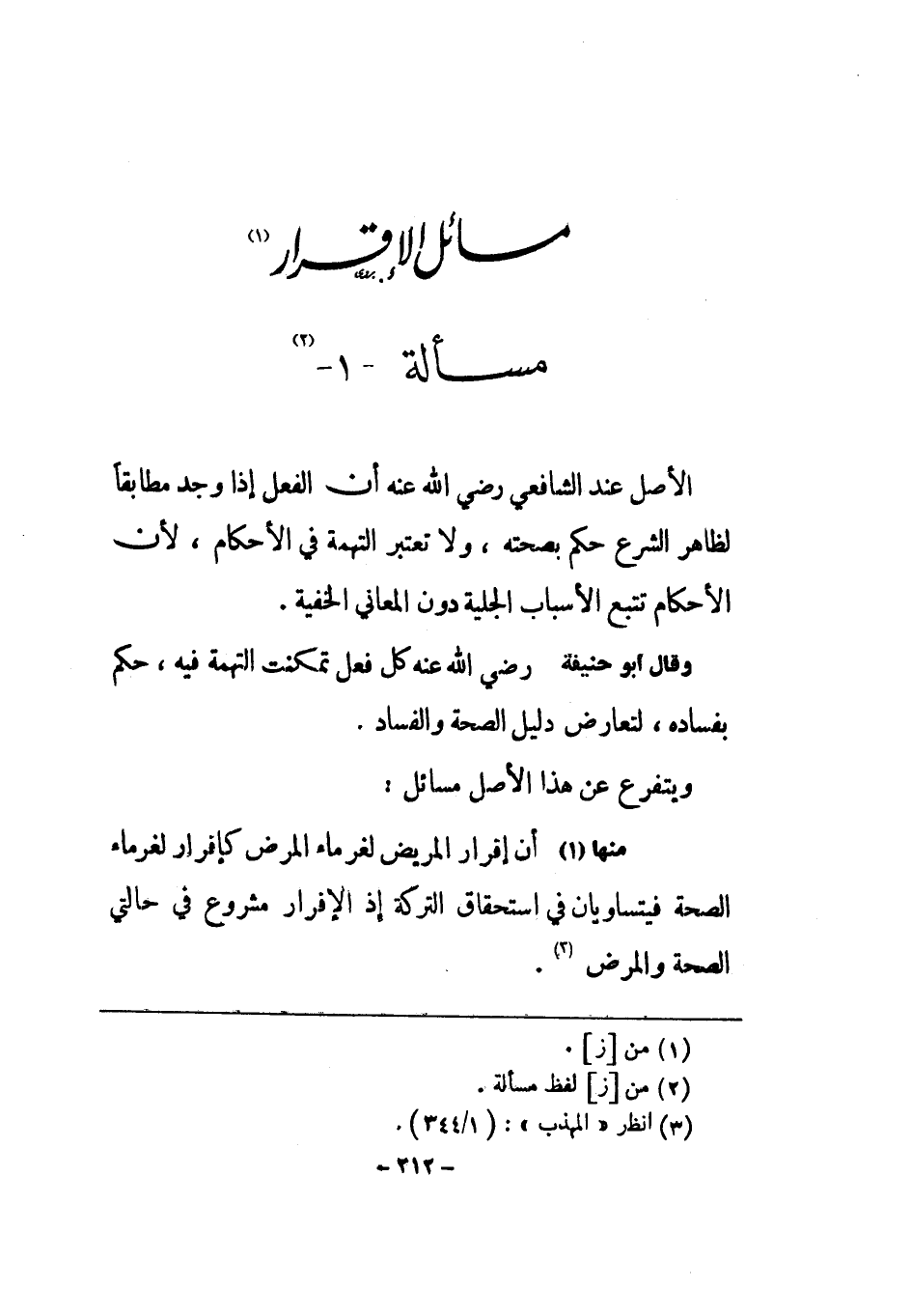 وَيتَفَرَّع عَن هَذَا الأَصْل مسَائِل