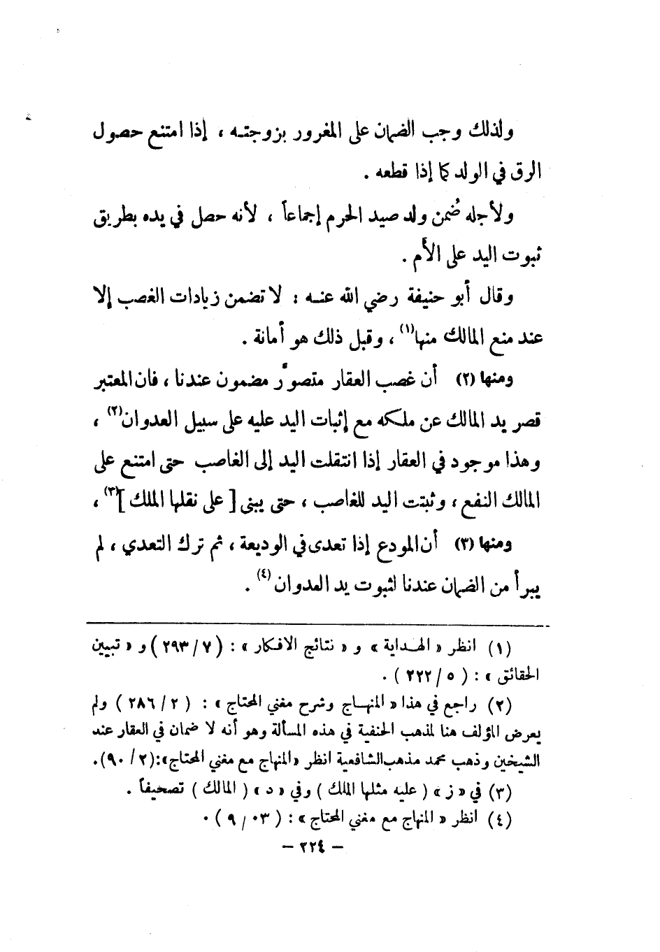 وَمِنْهَا أَن غصب الْعقار مُتَصَوّر مَضْمُون عندنَا فان الْمُعْتَبر قصر يَد الْمَالِك عَن ملكه مَعَ إِثْبَات الْيَد عَلَيْهِ على سَبِيل الْعدوان وَهَذَا مَوْجُود فِي الْعقار إِذا انْتَقَلت الْيَد إِلَى الْغَاصِب حَتَّى امْتنع على الْمَالِك النَّفْع وَثبتت الْيَد للْغَاصِب حَتَّى يبْنى على نقلهَا الْملك