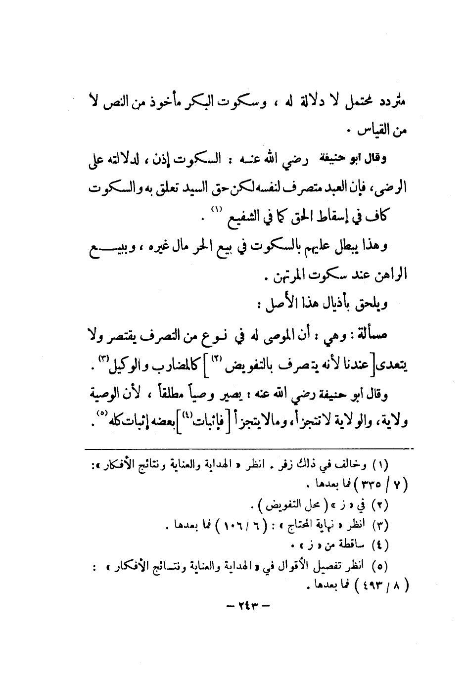 وَقَالَ أَبُو حنيفَة رض السُّكُوت إِذن لدلالته على الرِّضَا فَإِن العَبْد متصرف لنَفسِهِ لَكِن حق السَّيِّد تعلق بِهِ وَالسُّكُوت كَاف فِي إِسْقَاط الْحق كَمَا فِي الشَّفِيع