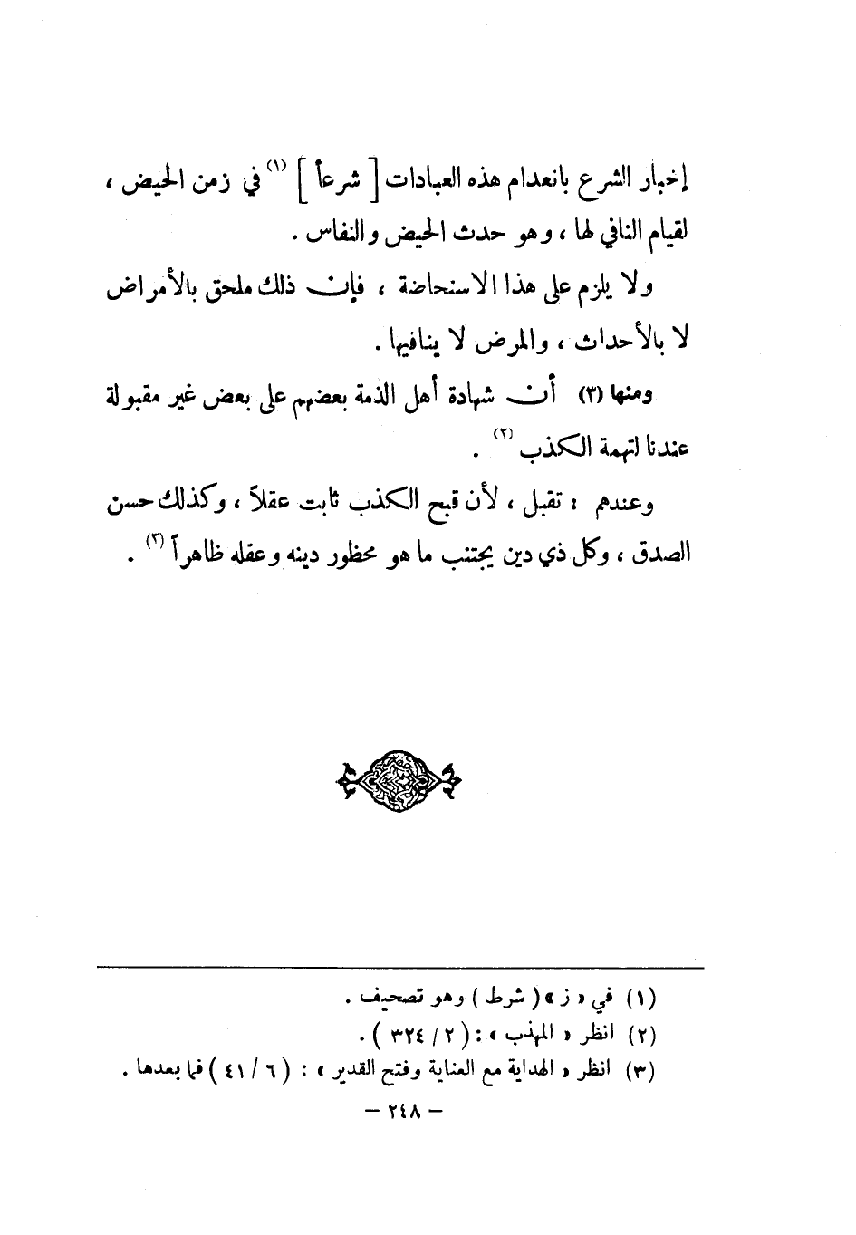 إِخْبَار الشَّرْع بانعدام هَذِه الْعِبَادَات شرعا فِي زمن الْحيض لقِيَام النَّافِي لَهَا وَهُوَ حدث الْحيض وَالنّفاس