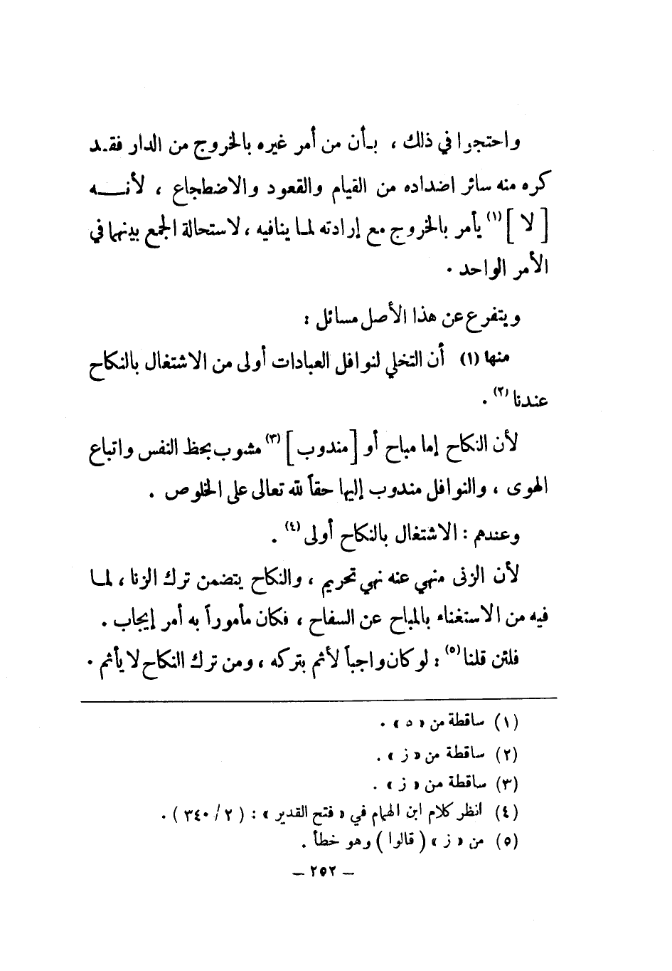 مِنْهَا أَن التخلي لنوافل الْعِبَادَات أولى من الِاشْتِغَال بِالنِّكَاحِ عندنَا
