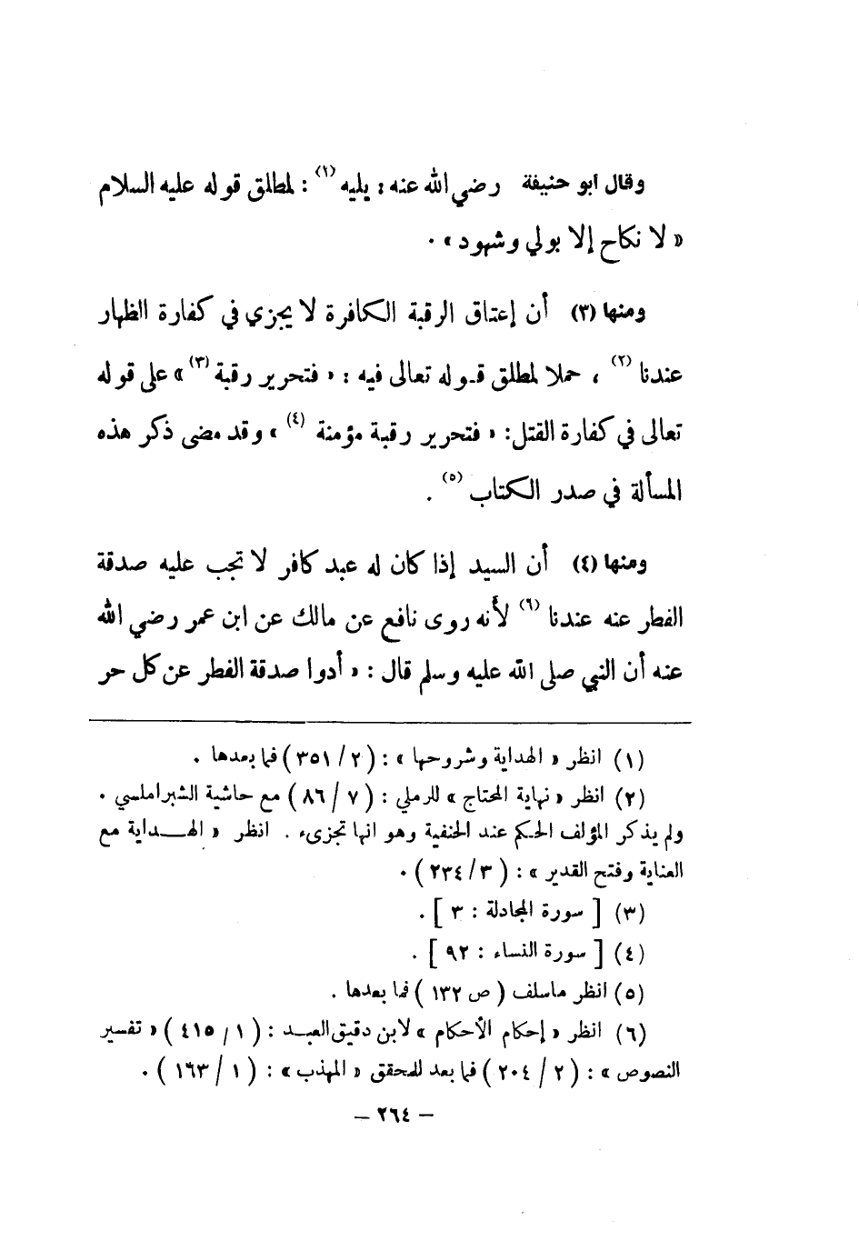 وَمِنْهَا أَن إِعْتَاق الرَّقَبَة الْكَافِرَة لَا يَجْزِي فِي كَفَّارَة الظِّهَار عندنَا حملا لمُطلق قَوْله تَعَالَى فِيهِ {فَتَحْرِير رَقَبَة} على قَوْله تَعَالَى فِي كَفَّارَة الْقَتْل {فَتَحْرِير رَقَبَة مُؤمنَة} وَقد مضى ذكر هَذِه الْمَسْأَلَة فِي صدر الْكتاب