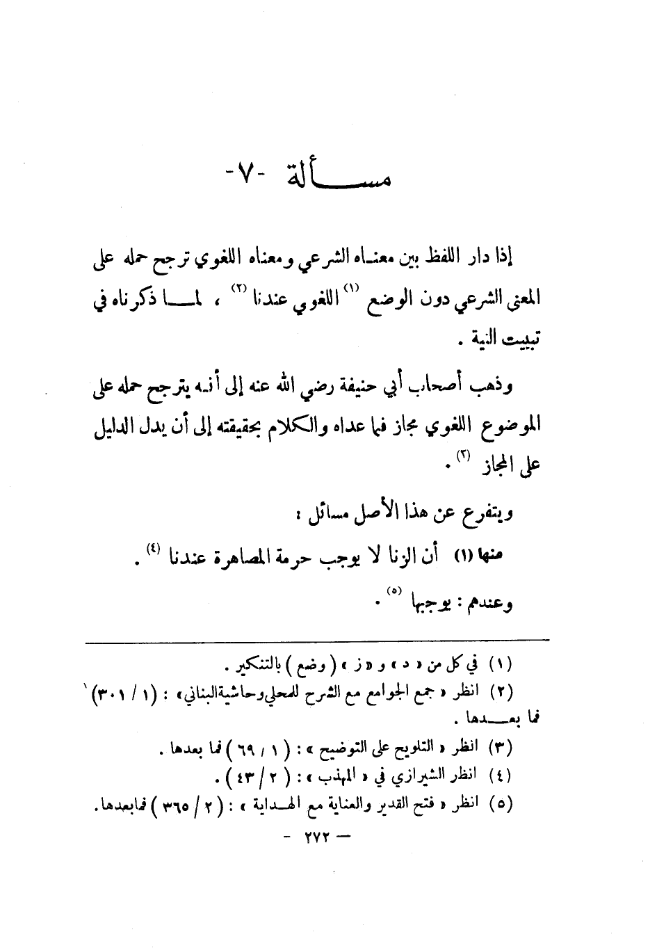 ويفرع عَن هَذَا الأَصْل مسَائِل