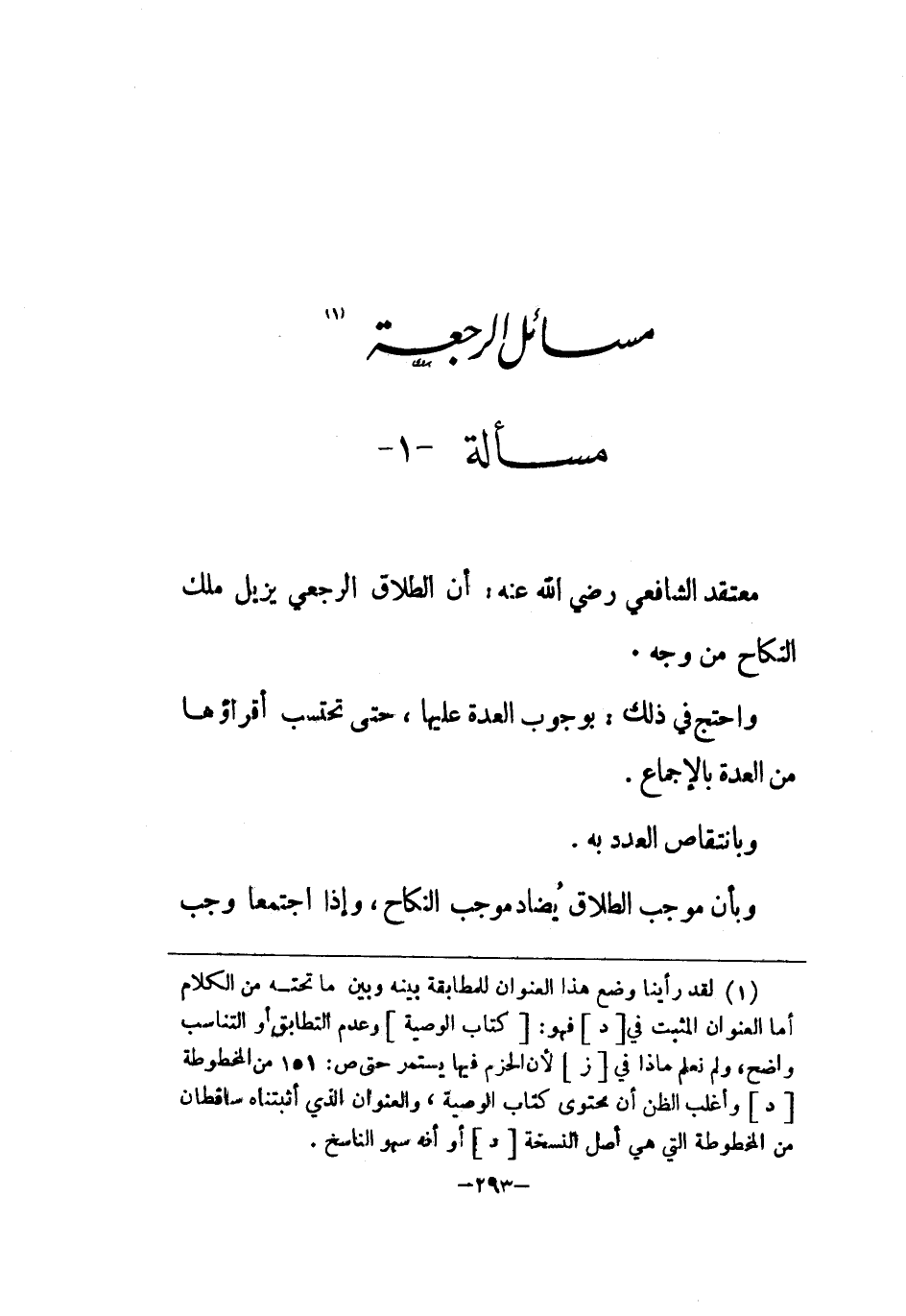 مُعْتَقد الشَّافِعِي رض أَن الطَّلَاق الرَّجْعِيّ يزِيل ملك النِّكَاح من وَجه