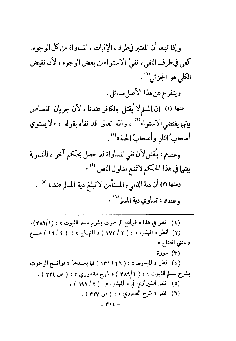 مِنْهَا إِن الْمُسلم لَا يقتل بالكافر عندنَا لِأَن جَرَيَان الْقصاص بَينهمَا يَقْتَضِي الاسْتوَاء وَالله تَعَالَى قد نَفَاهُ بقوله {لَا يَسْتَوِي أَصْحَاب النَّار وَأَصْحَاب الْجنَّة}