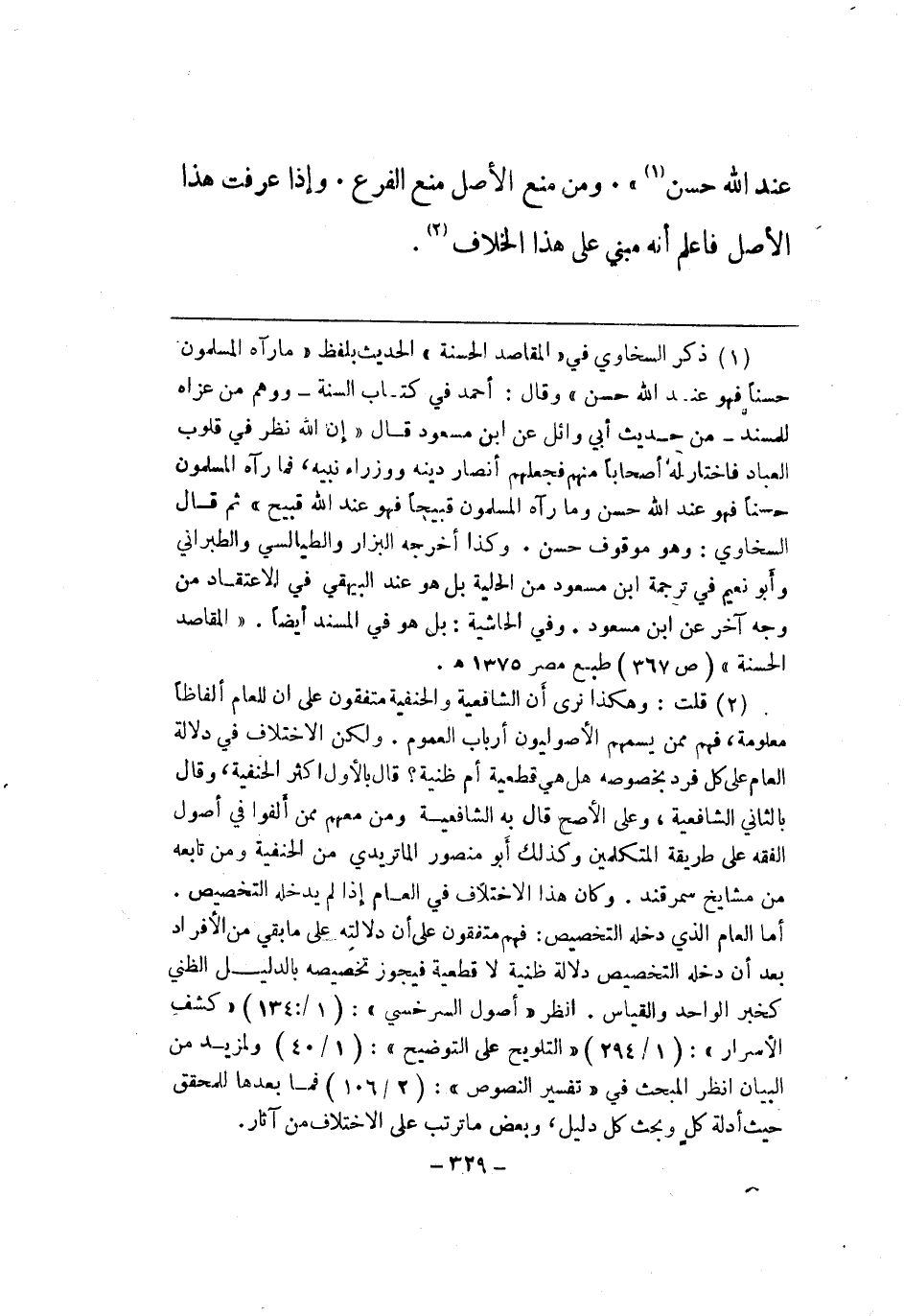 عِنْد الله حسن وَمن منع الأَصْل منع الْفَرْع وَإِذا عرفت هَذَا الأَصْل فَأعْلم أَنه مَبْنِيّ على هَذَا الْخلاف