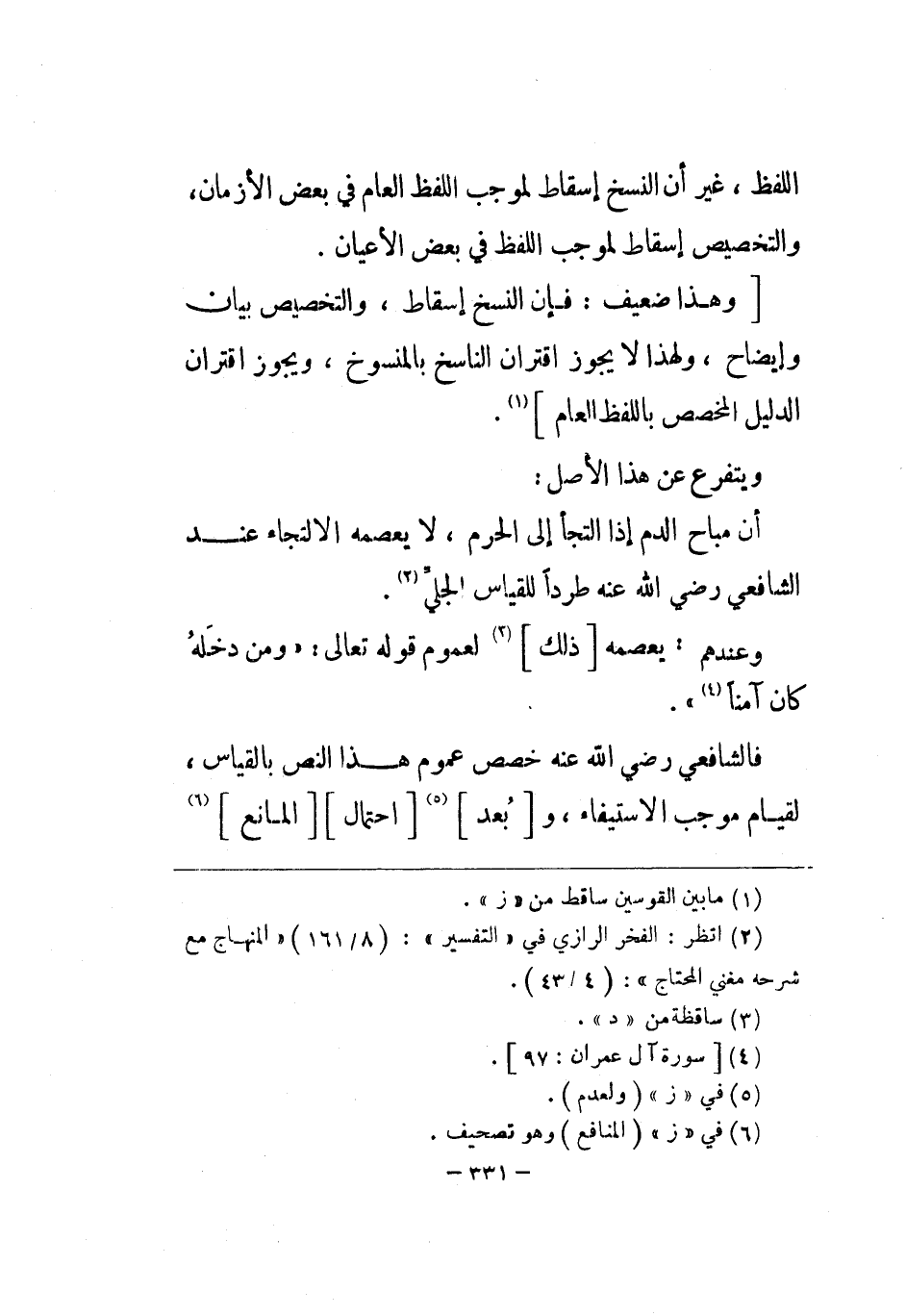 فالشافعي رض خصص عُمُوم هَذَا النَّص بِالْقِيَاسِ لقِيَام مُوجب الِاسْتِيفَاء وَبعد احْتِمَال الْمَانِع