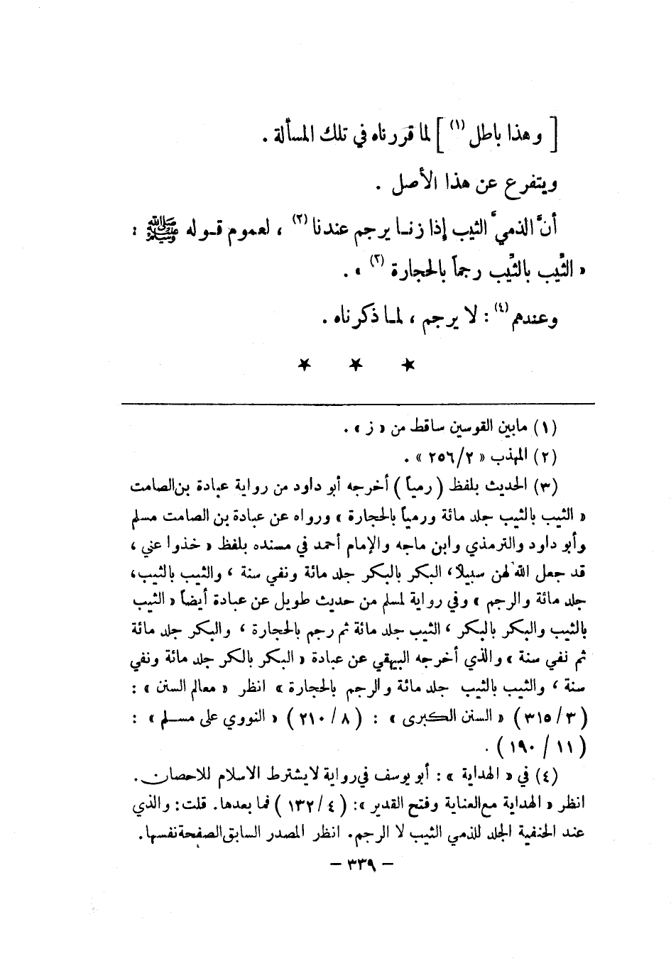 أَن الذِّمِّيّ الثّيّب إِذا زنا يرْجم عندنَا ولعموم قَوْله صلى الله عَلَيْهِ وَسلم الثّيّب بِالثَّيِّبِ رجما بِالْحِجَارَةِ