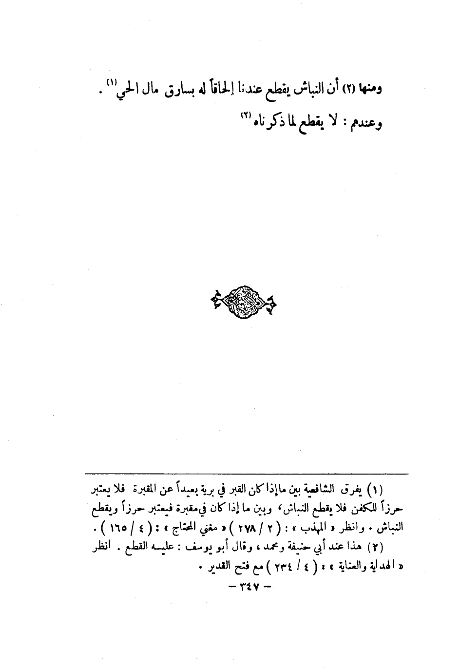 وَمِنْهَا أَن النباش يقطع عندنَا إِلْحَاقًا لَهُ بسارق مَال الْحَيّ