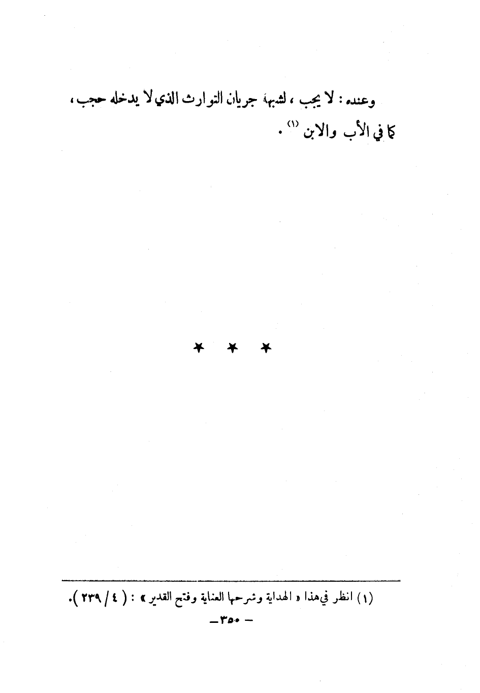 وَعِنْده لَا يجب لشُبْهَة جَرَيَان التَّوَارُث الَّذِي لَا يدْخلهُ حجب كَمَا فِي الْأَب وَالِابْن