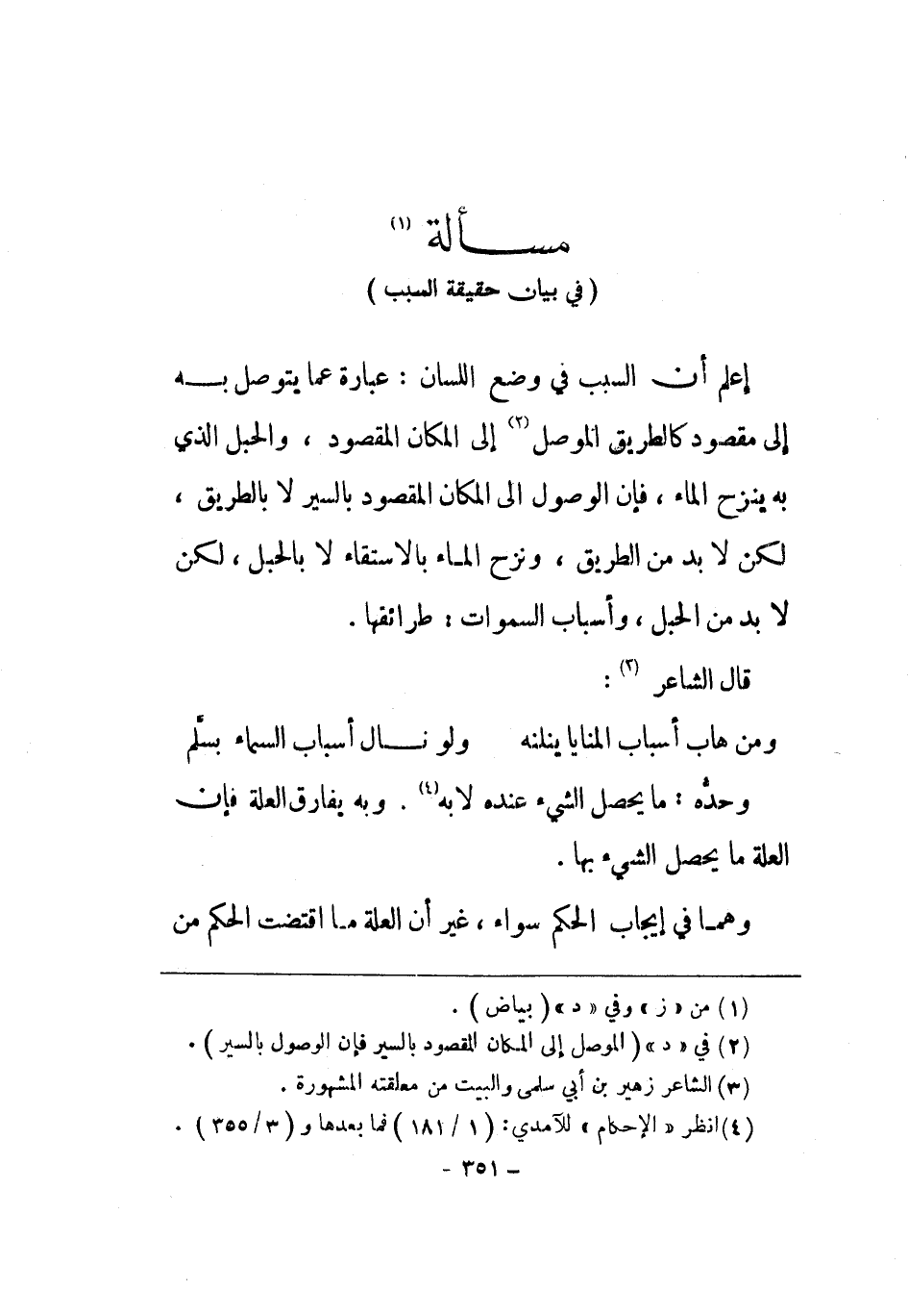 مسالة فِي بَيَان حَقِيقَة السَّبَب