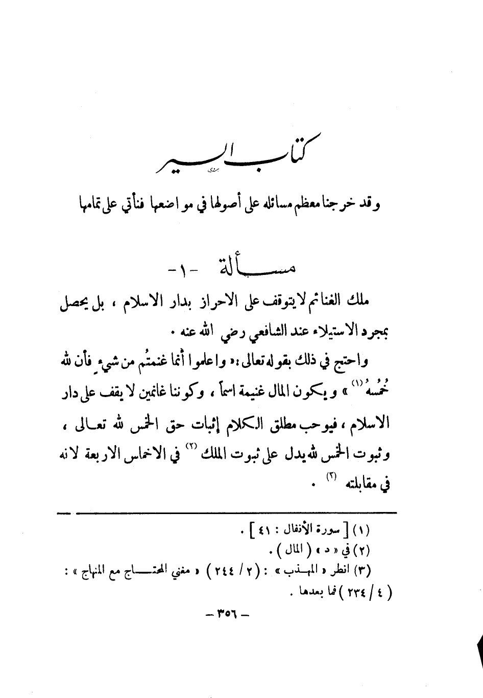 ملك الْغَنَائِم لَا يتَوَقَّف على الْإِحْرَاز بدار الْإِسْلَام بل يحصل بِمُجَرَّد الِاسْتِيلَاء عِنْد الشَّافِعِي رض