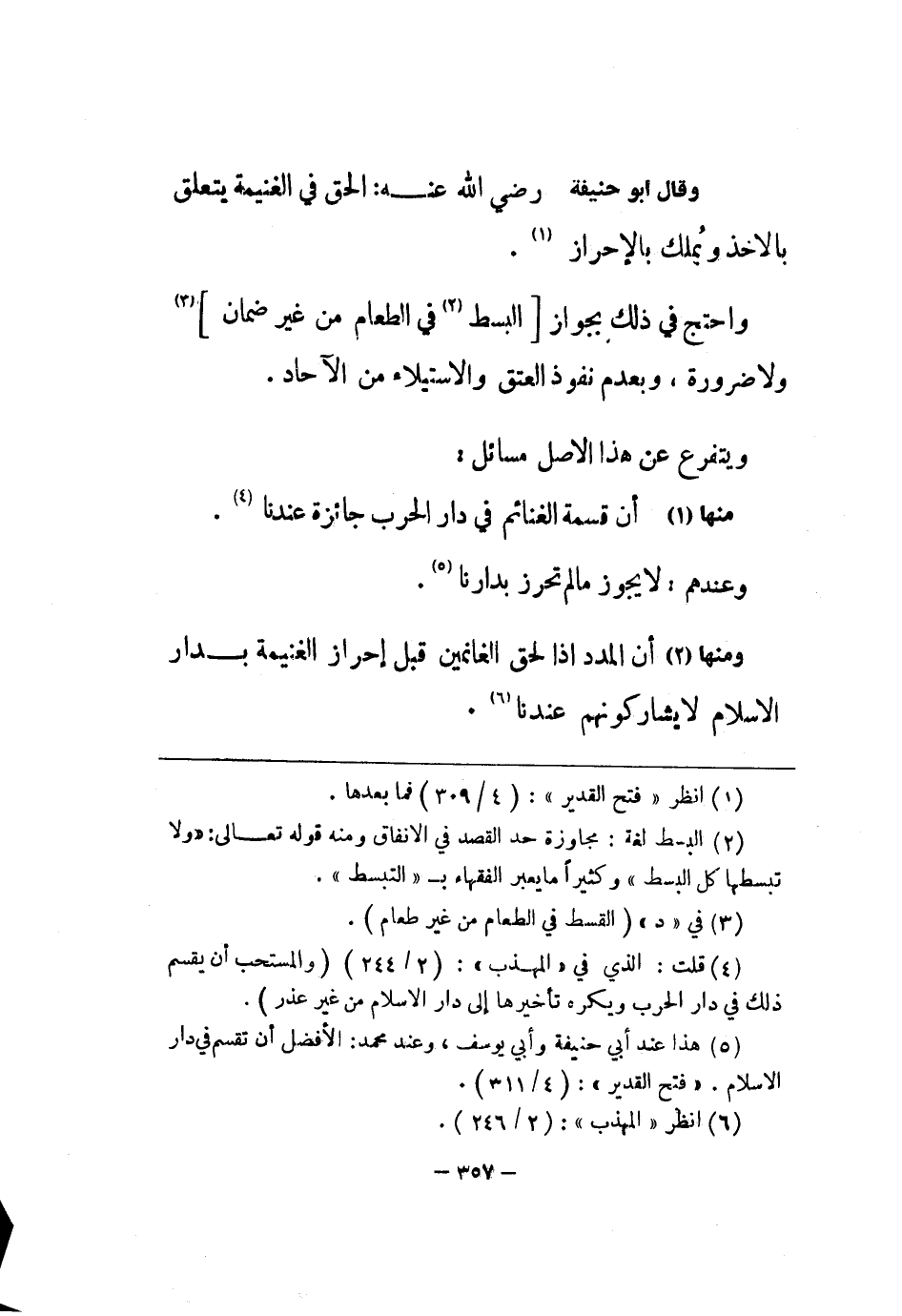 مِنْهَا أَن قسْمَة الْغَنَائِم فِي دَار الْحَرْب جَائِزَة عندنَا
