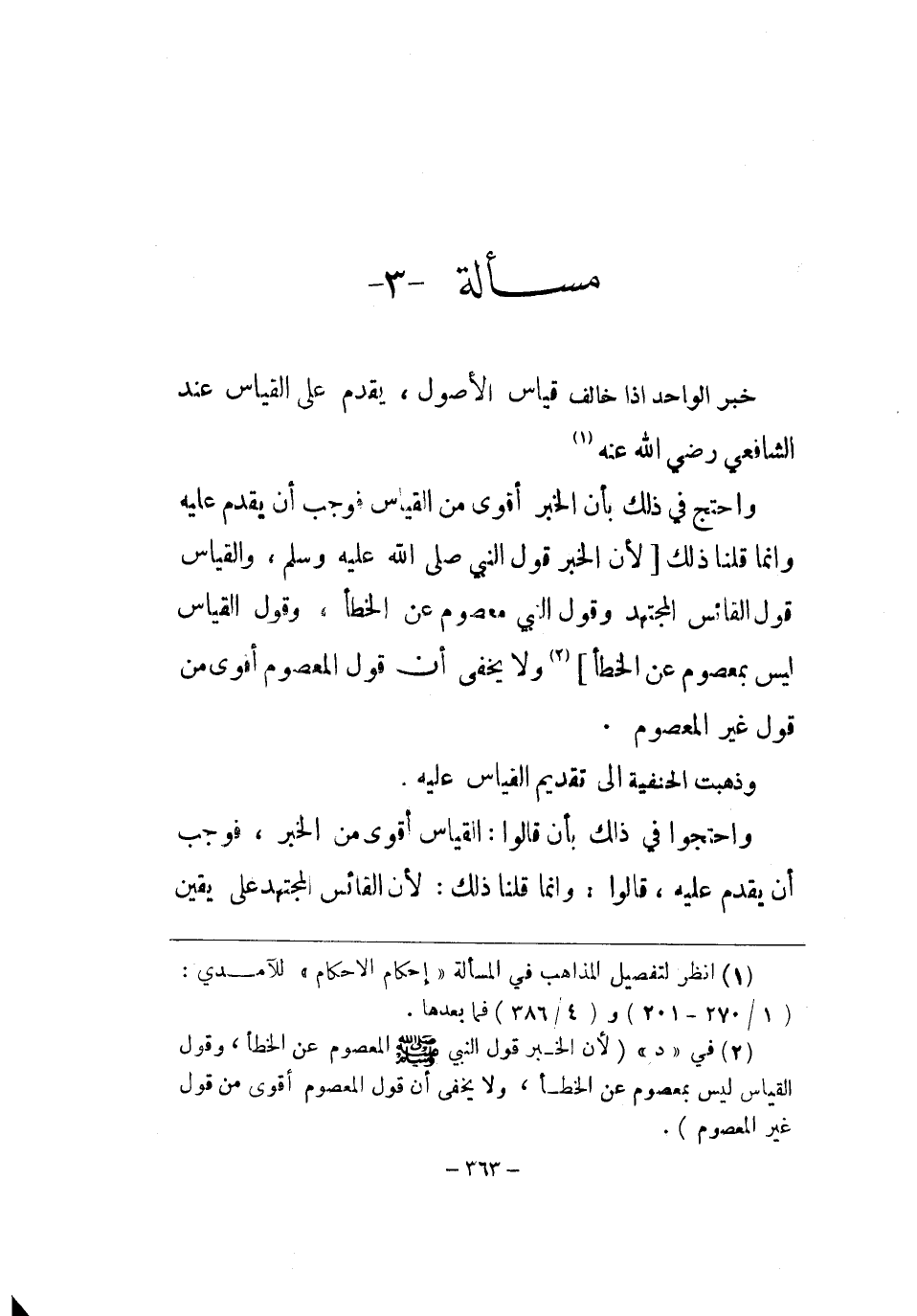 خبر الْوَاحِد إِذا خَالف قِيَاس الْأُصُول يقدم على الْقيَاس عِنْد الشَّافِعِي رض