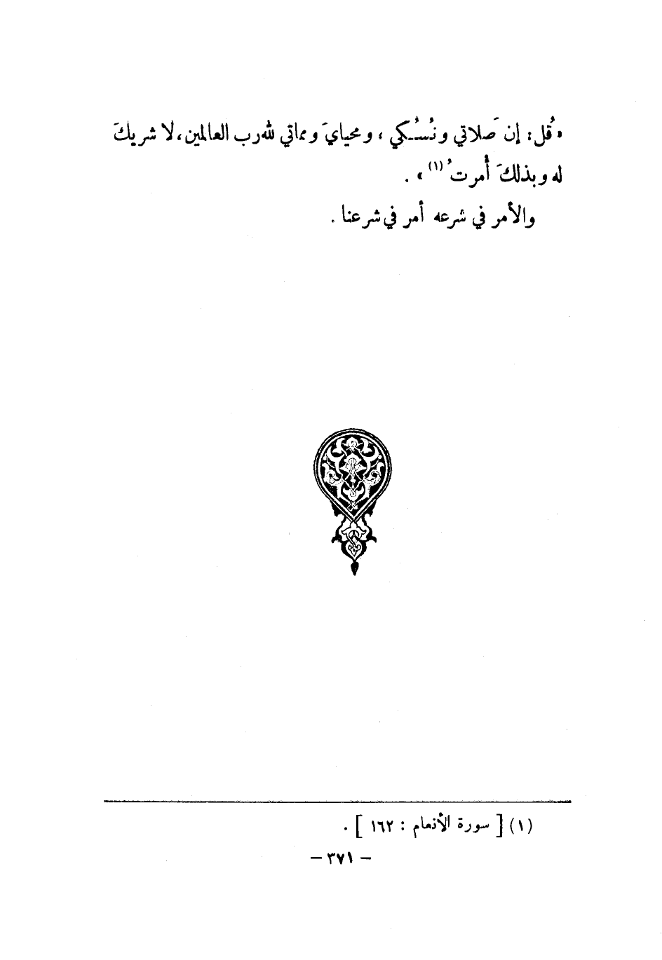 {قل إِن صَلَاتي ونسكي ومحياي ومماتي لله رب الْعَالمين لَا شريك لَهُ وَبِذَلِك أمرت}