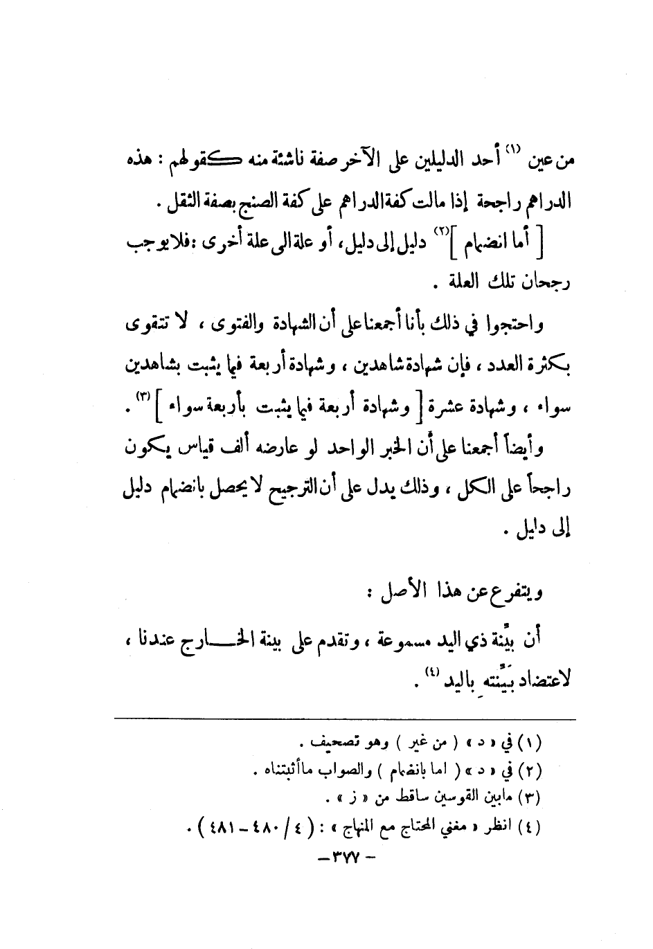 أما انضمام دَلِيل إِلَى دَلِيل أَو عِلّة إِلَى عِلّة أُخْرَى فَلَا يُوجب رُجْحَان تِلْكَ الْعلَّة