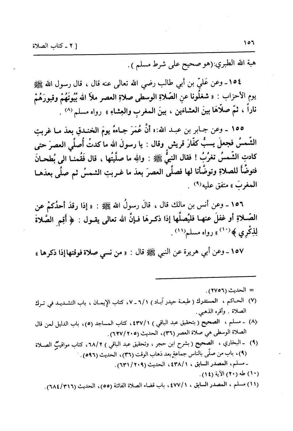 156 - وَعَن أنس بن مَالك قَالَ، قَالَ رَسُول الله صَلَّى اللَّهُ عَلَيْهِ وَسَلَّم َ: " إِذا رقد أحدكُم عَن الصَّلَاة أَو غفل عَنْهَا فليصلها إِذا ذكرهَا فَإِن الله تَعَالَى يَقُول: {أقِم الصَّلَاة لذكري} " رَوَاهُ مُسلم.