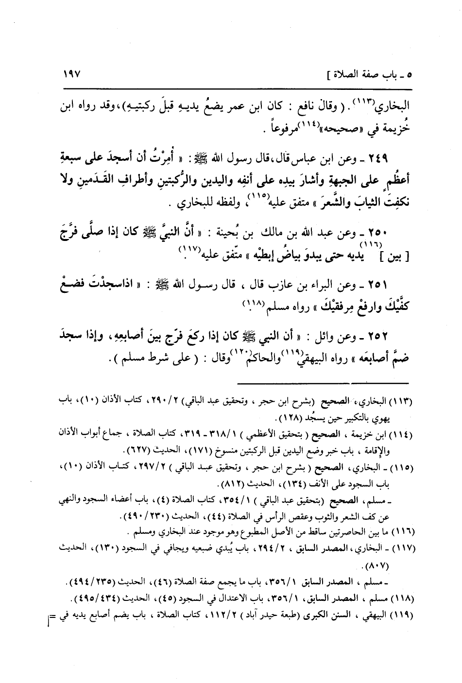 252 - وَعَن وَائِل: " أَن النَّبِي صَلَّى اللَّهُ عَلَيْهِ وَسَلَّم َ كَانَ إِذا ركع فرّج بَين أَصَابِعه، وَإِذا سجد ضم أَصَابِعه " رَوَاهُ الْبَيْهَقِيّ وَالْحَاكِم وَقَالَ: ((عَلَى شَرط مُسلم)) .