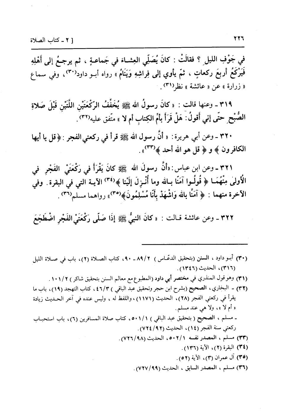 319 - وعنها قَالَت: " كَانَ رَسُول الله صَلَّى اللَّهُ عَلَيْهِ وَسَلَّم َ يُخَفف الرَّكْعَتَيْنِ اللَّتَيْنِ قبل صَلَاة الصُّبْح حَتَّى إِنِّي أَقُول: هَل قَرَأَ بِأم الْكتاب أم لَا " مُتَّفق عَلَيْهِ.