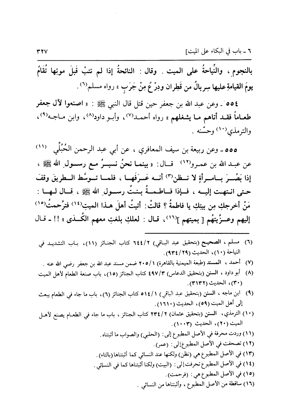 554 - وَعَن عبد الله بن جَعْفَر حِين قتل قَالَ النَّبِي صَلَّى اللَّهُ عَلَيْهِ وَسَلَّم َ: " اصنعوا لآل جَعْفَر طَعَاما فقد أَتَاهُم مَا يشغلهم " رَوَاهُ أَحْمد، وَأَبُو دَاوُد، وَابْن مَاجَه، (وَالتِّرْمِذِيّ وَحسنه)