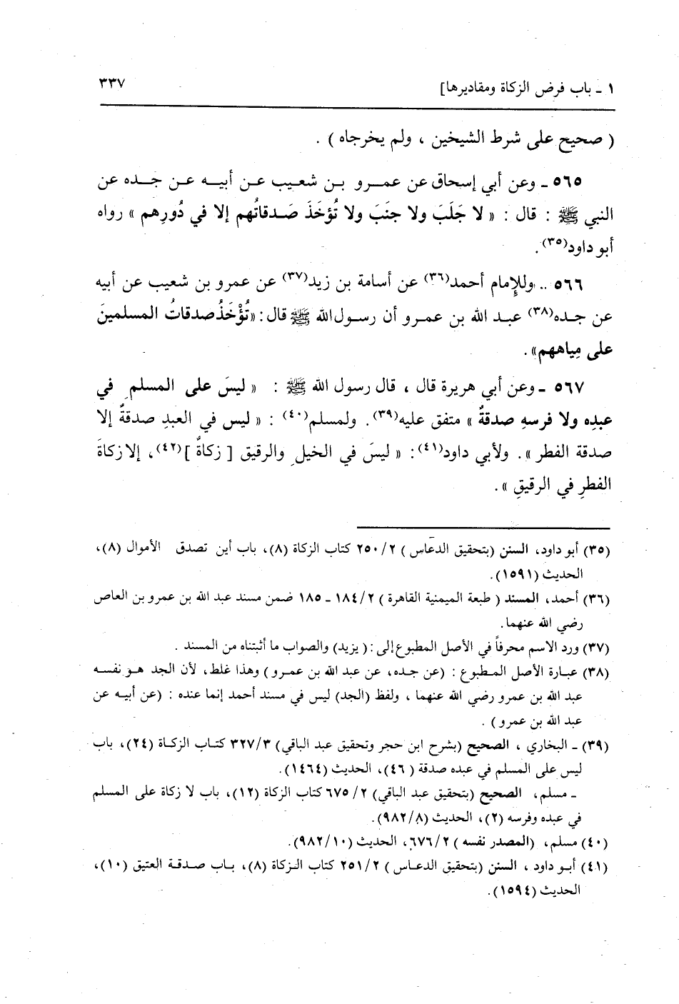 566 - وَللْإِمَام أَحْمد عَن أُسَامَة بن زيد عَن عَمْرو بن شُعَيْب عَن أَبِيه عَن جده عبد الله بن عَمْرو أَن رَسُول الله صَلَّى اللَّهُ عَلَيْهِ وَسَلَّم َ قَالَ: " تُؤْخَذ صدقَات الْمُسلمين عَلَى مِيَاههمْ ".
