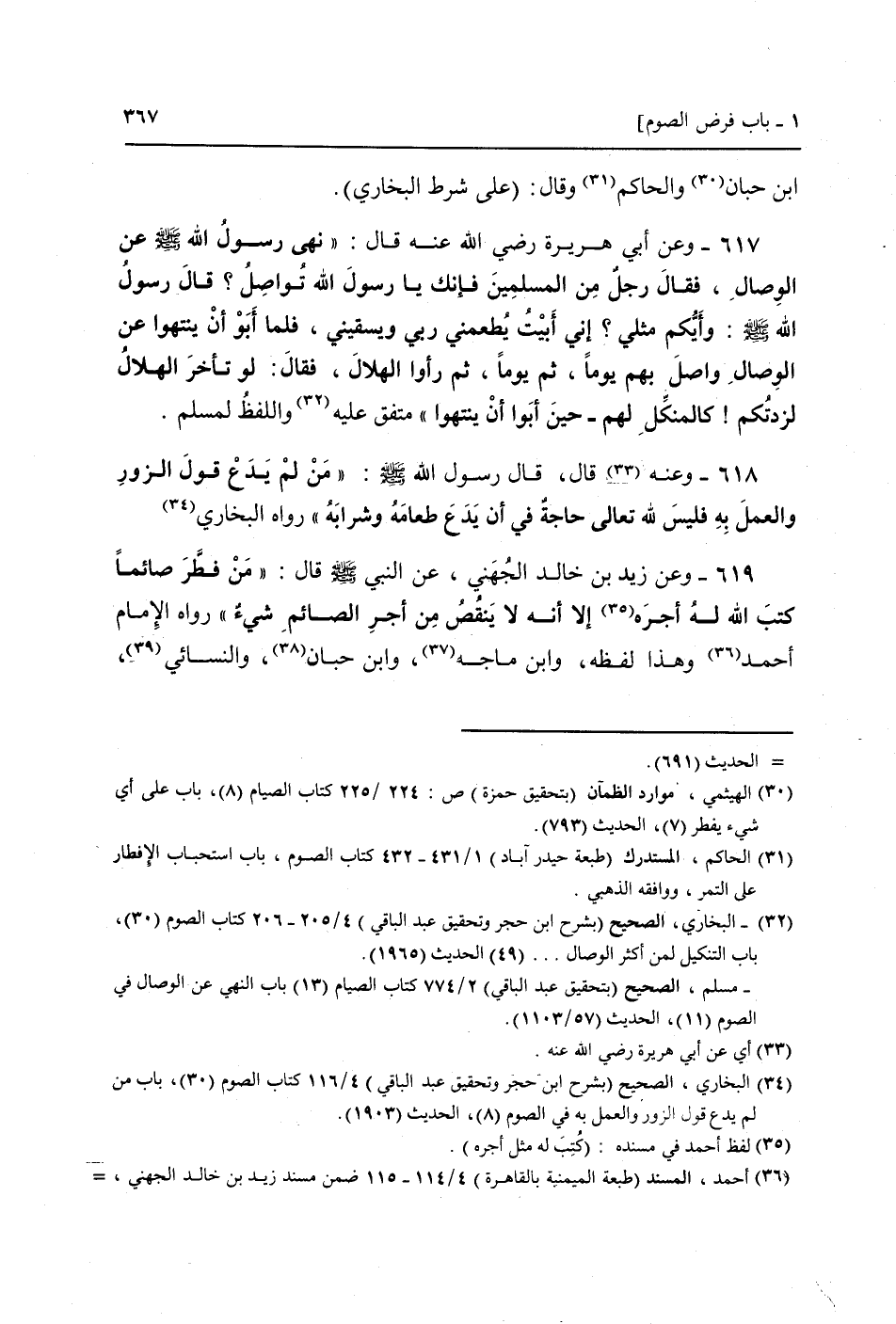 618 - وَعنهُ قَالَ، قَالَ رَسُول الله صَلَّى اللَّهُ عَلَيْهِ وَسَلَّم َ: " من لم يدع قَول الزُّور وَالْعَمَل بِهِ فَلَيْسَ لله تَعَالَى حَاجَة فِي أَن يدع طَعَامه وَشَرَابه " رَوَاهُ البُخَارِيّ.