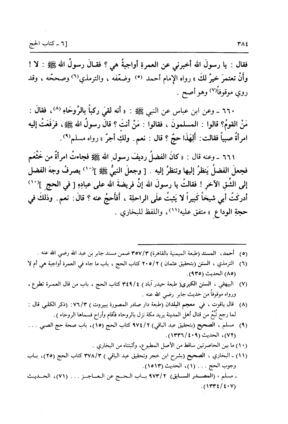 660 - وَعَن ابْن عَبَّاس عَن النَّبِي صَلَّى اللَّهُ عَلَيْهِ وَسَلَّم َ: " أَنه لَقِي ركبا بِالرَّوْحَاءِ، فَقَالَ: من الْقَوْم؟ قَالُوا: الْمُسلمُونَ، فَقَالُوا: من أَنْت؟ قَالَ رَسُول الله صَلَّى اللَّهُ عَلَيْهِ وَسَلَّم َ، فَرفعت إِلَيْهِ امْرَأَة صَبيا فَقَالَت: أَلِهَذَا حج؟ قَالَ: نعم. وَلَك أجر " رَوَاهُ مُسلم.