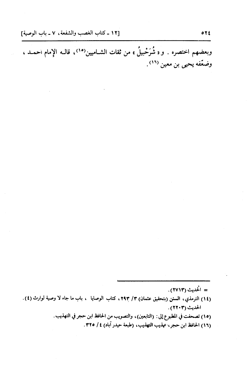 النّصْف، ولابنة الابْن السُّدس تَكْمِلَة الثُّلثَيْنِ، وَمَا بَقِي فللأخت. فأتينا أَبَا مُوسَى فَأَخْبَرنَاهُ بقول ابْن مَسْعُود، فَقَالَ: لَا تَسْأَلُونِي مَا دَامَ هَذَا الحبر فِيكُم " رَوَاهُ البُخَارِيّ. (وَقَالَ ابْن دَاوُد: (وَهُوَ خبر فِي تثبيته نظر! لِأَن أَبَا قيس مَجْهُول لم تثبت عَدَالَته، وهزيل قريب مِنْهُ) كَذَا قَالَ: وَفِي قَوْله نظر) .