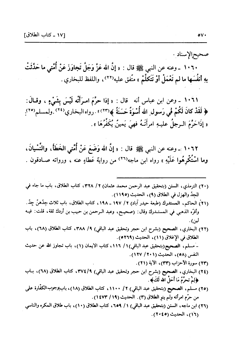 1065 - وَعَن عَائِشَة عَن النَّبِي صَلَّى اللَّهُ عَلَيْهِ وَسَلَّم َ قَالَ: " رُفع الْقَلَم عَن ثَلَاثَة: عَن النَّائِم حَتَّى يَسْتَيْقِظ، وَعَن الصَّغِير حَتَّى يكبر، وَعَن الْمَجْنُون حَتَّى يعقل - أَو يفِيق " رَوَاهُ أَحْمد، وَأَبُو دَاوُد، وَابْن مَاجَه، وَالنَّسَائِيّ، وَالْحَاكِم، وَقَالَ البُخَارِيّ (وَقَالَ عُثْمَان: لَيْسَ لمَجْنُون وَلَا لسكران طَلَاق. وَقَالَ ابْن عَبَّاس: طَلَاق الْمَجْنُون والمستكره لَيْسَ بجائز. وَقَالَ عَلّي: كل الطَّلَاق جَائِز إِلَّا طَلَاق الْمَعْتُوه. وَقَالَ ابْن عَبَّاس: الطَّلَاق عَن وطر، وَالْعتاق مَا أُرِيد بِهِ وَجه الله) .