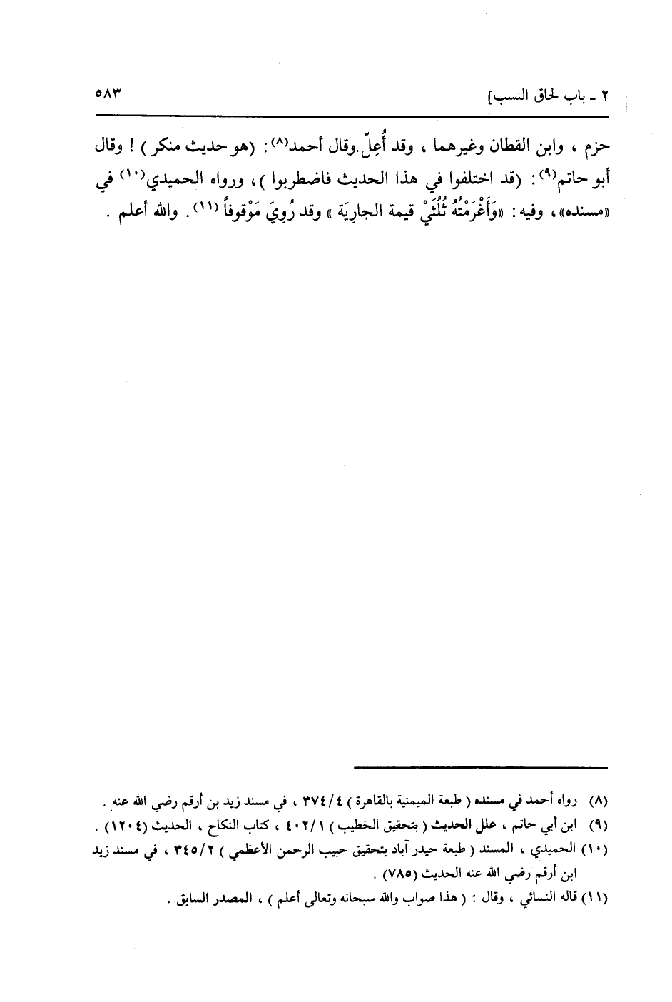 1082 - عَن قبيصَة بن ذُؤَيْب، عَن عَمْرو بن الْعَاصِ قَالَ: " لَا تلبسوا علينا سنة نَبينَا، عدَّة أم الْوَلَد، إِذا توفّي عَنْهَا سَيِّدهَا، أَرْبَعَة أشهر وَعشرا " رَوَاهُ أَحْمد وَهَذَا لَفظه، وَأَبُو دَاوُد، وَابْن ماجة، (وَرُوَاته ثِقَات، وَرَوَاهُ الْحَاكِم وَقَالَ: (هَذَا حَدِيث صَحِيح عَلَى شَرط الشَّيْخَيْنِ) . وَقَالَ الدَّارَقُطْنِيّ: (قبيصَة لم يسمع من عَمْرو. وَالصَّوَاب: لَا تلبسوا علينا ديننَا، مَوْقُوف) ، وَفِي قَوْله نظر) .