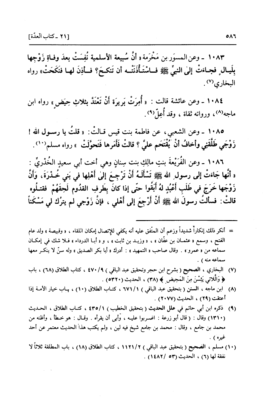 1088 - وَعَن أم عَطِيَّة أَن رَسُول الله صَلَّى اللَّهُ عَلَيْهِ وَسَلَّم َ قَالَ: " لَا تحد امْرَأَة عَلَى ميت فَوق ثَلَاث - إِلَّا عَلَى زوج أَرْبَعَة أشهر وَعشرا، وَلَا تلبس ثوبا مصبوغا إِلَّا ثوب عصب، وَلَا تكتحل، وَلَا تمس طيبا إِلَّا إِذا طهرت نبذة من قسط أَو أظفار " مُتَّفق