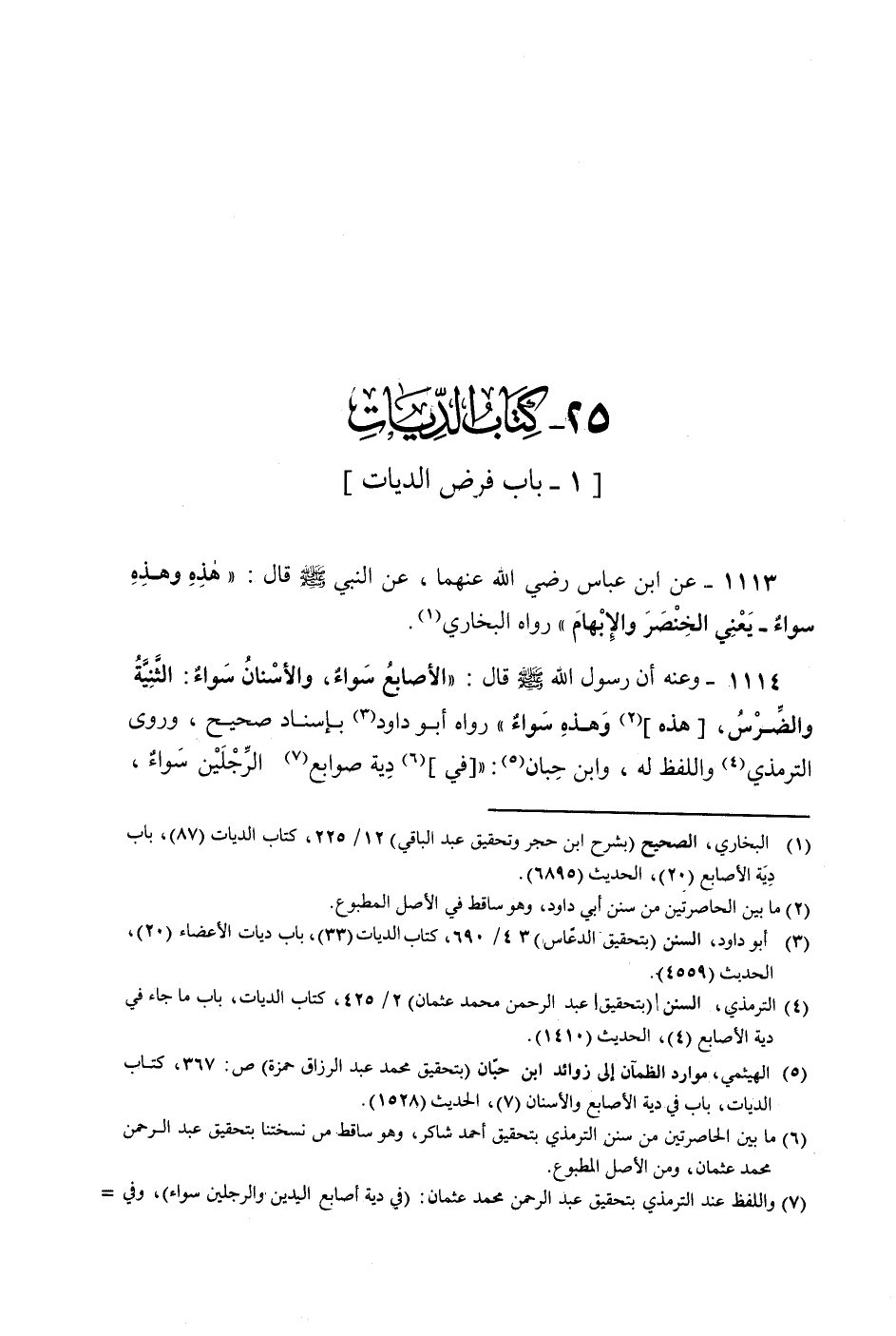 1116 - وَعَن عَمْرو بن شُعَيْب، عَن أَبِيه، عَن جده: " أَن النَّبِي صَلَّى اللَّهُ عَلَيْهِ وَسَلَّم َ قَالَ فِي المواضح خمس، خمس من الْإِبِل " رَوَاهُ أَحْمد، وَأَبُو دَاوُد، وَابْن ماجة، وَالنَّسَائِيّ، (وَالتِّرْمِذِيّ وَحسنه) ، وَاللَّفْظ لِأَحْمَد وَابْن ماجة، زَاد أَحْمد، " والأصابع [سَوَاء] كُلهنَّ عشر، عشر من الْإِبِل ".