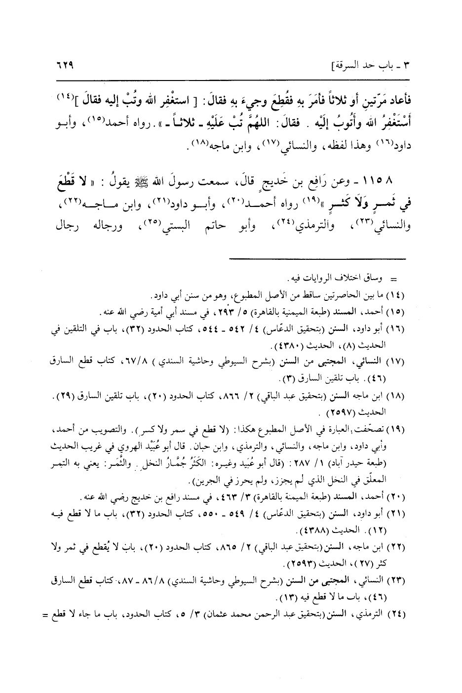 1160 - عَن أنس بن مَالك رَضِيَ اللَّهُ عَنْه: " أَن النَّبِي صَلَّى اللَّهُ عَلَيْهِ وَسَلَّم َ أُتي بِرَجُل قد شرب [الْخمر] فجلده بجريدتين نَحْو أَرْبَعِينَ. قَالَ: وَفعله أَبُو بكر. فَلَمَّا كَانَ عمر اسْتَشَارَ النَّاس، فَقَالَ عبد الرَّحْمَن: أخف الْحُدُود ثَمَانُون، فَأمر بِهِ عمر " مُتَّفق عَلَيْهِ. وَهَذَا لفظ مُسلم، وَهُوَ أتم.