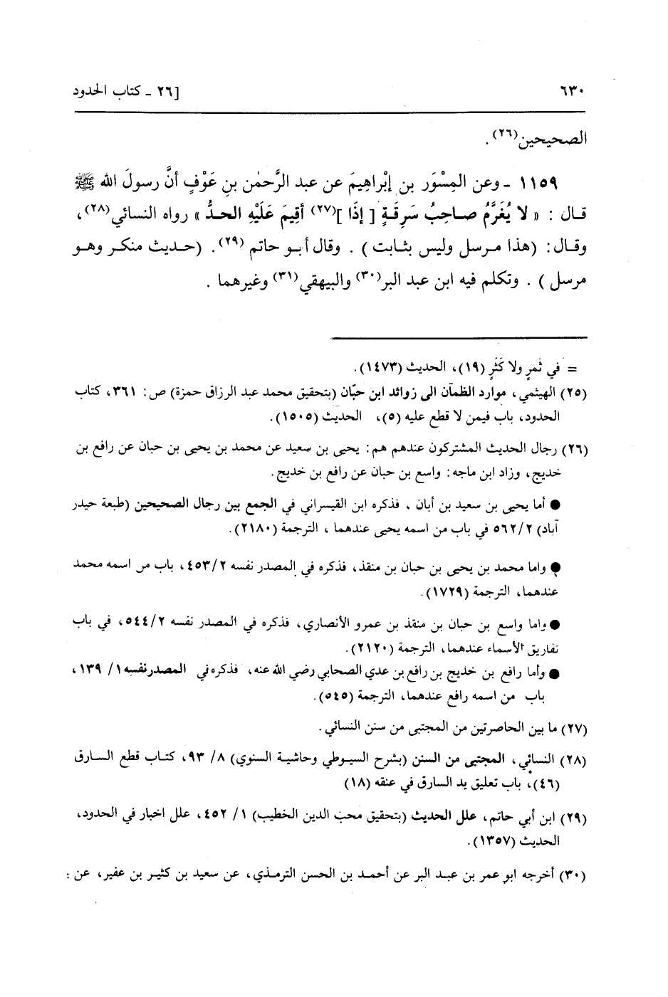 1161 - وَله عَن حُصَيْن بن الْمُنْذر أبي ساسان قَالَ: " شهِدت عُثْمَان بن عَفَّان وأُتي بالوليد قد صَلَّى الصُّبْح رَكْعَتَيْنِ ثمَّ قَالَ: أَزِيدكُم؟ فَشهد عَلَيْهِ رجلَانِ أَحدهمَا حمْرَان أَنه شرب الْخمر، وَشهد آخر أَنه رَآهُ يتقيأ، فَقَالَ عُثْمَان رَضِيَ اللَّهُ عَنْه: [إِنَّه] لم يتقيأ حَتَّى شربهَا. فَقَالَ: يَا عَلّي قُم فاجلده. فَقَالَ عَلّي: قُم يَا حسن فاجلده. فَقَالَ الْحسن: ولِّ حارَّها من تولى قارَّها، فَكَأَنَّهُ وجد عَلَيْهِ، فَقَالَ يَا عبد الله بن جَعْفَر، قُم فاجلده فجلده، وَعلي يعد، حَتَّى بلغ أَرْبَعِينَ فَقَالَ: أمسك. ثمَّ قَالَ: جلد النَّبِي صَلَّى اللَّهُ عَلَيْهِ وَسَلَّم َ أَرْبَعِينَ، و [جلد] أَبُو بكر أَرْبَعِينَ، وَعمر ثَمَانِينَ، وكل سُنّة، وَهَذَا أحب إِلَيّ ".