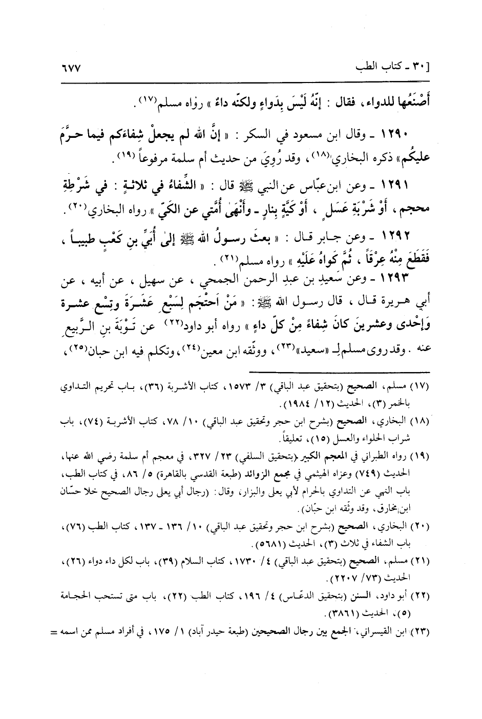 1297 - وَعَن أبي سعيد الْخُدْرِيّ قَالَ: " جَاءَ رجل إِلَى النَّبِي صَلَّى اللَّهُ عَلَيْهِ وَسَلَّم َ فَقَالَ: إِن أخي اسْتطْلقَ بَطْنه؟ فَقَالَ رَسُول الله صَلَّى اللَّهُ عَلَيْهِ وَسَلَّم َ: اسْقِهِ عسلاً، فَسَقَاهُ. ثمَّ جَاءَهُ فَقَالَ: إِنِّي سقيته عسلاً فَلم يزده إِلَّا اسْتِطْلَاقًا! فَقَالَ لَهُ - ثَلَاث مَرَّات - ثمَّ جَاءَ الرَّابِعَة فَقَالَ [اسْقِهِ عسلاً، فَقَالَ: لقد سقيته فَلم يزده إِلَّا اسْتِطْلَاقًا، فَقَالَ] رَسُول الله صَلَّى اللَّهُ عَلَيْهِ وَسَلَّم َ: صدق الله، وَكذب بطن أَخِيك " مُتَّفق عَلَيْهَا، وَاللَّفْظ لمُسلم.