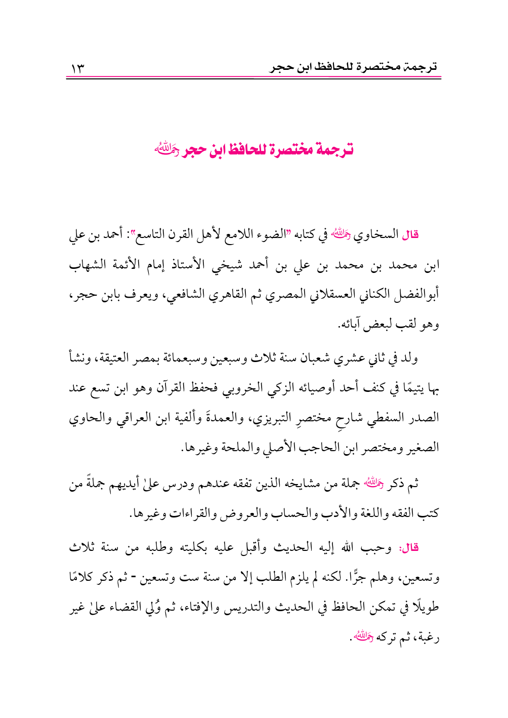 ترجمة مختصرة للحافظ ابن حجر -رحمه الله-