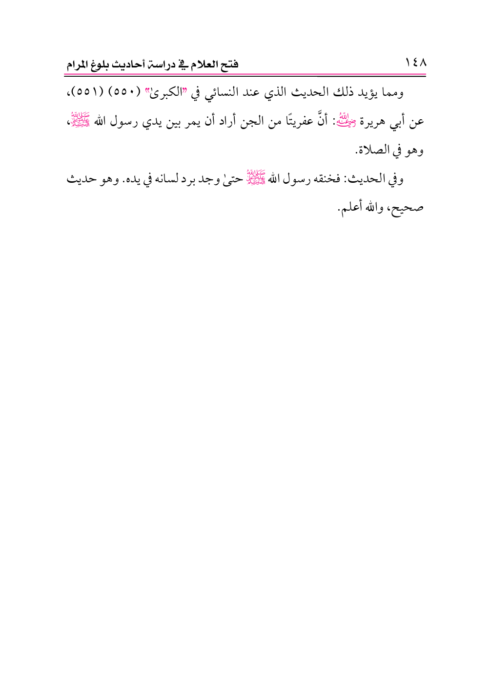 ومما يؤيد ذلك الحديث الذي عند النسائي في «الكبرى» (٥٥٠) (٥٥١)، عن أبي هريرة -رضي الله عنه-: أنَّ عفريتًا من الجن أراد أن يمر بين يدي رسول الله -صلى الله عليه وعلى آله وسلم-، وهو في الصلاة.