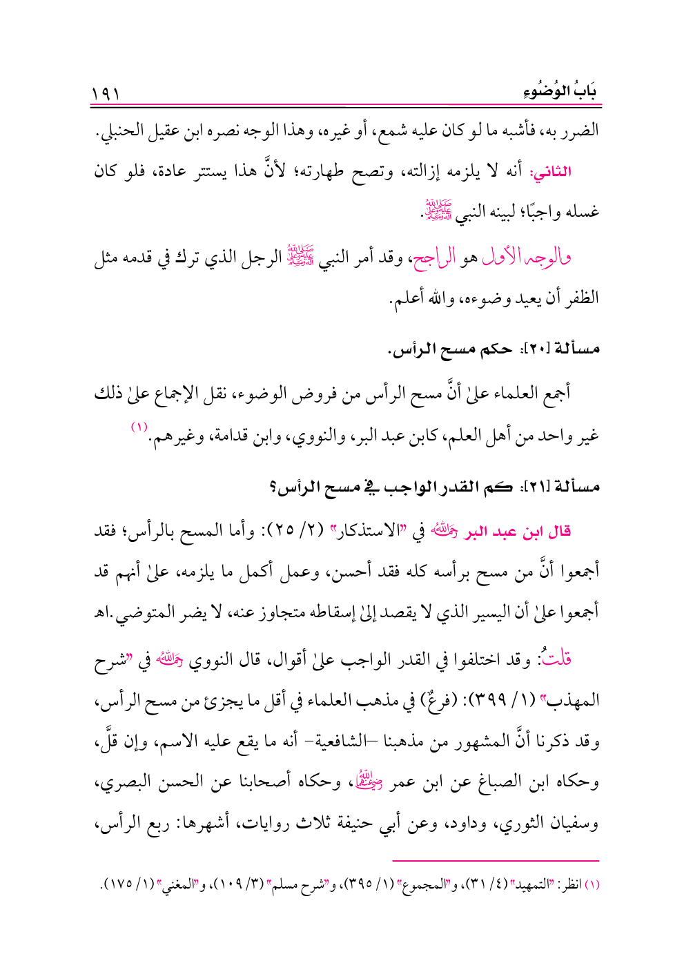 (¬١) انظر: «التمهيد» (٤/ ٣١)، و «المجموع» (١/ ٣٩٥)، و «شرح مسلم» (٣/ ١٠٩)، و «المغني» (١/ ١٧٥).