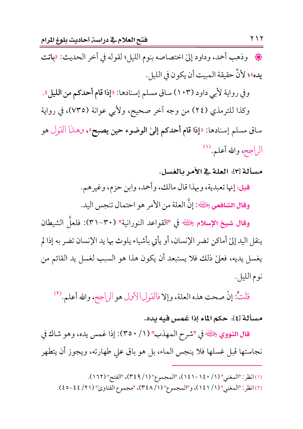 (¬١) انظر: «المغني» (١/ ١٤٠ - ١٤١)، «المجموع» (١/ ٣٤٩)، «الفتح» (١٦٢).
