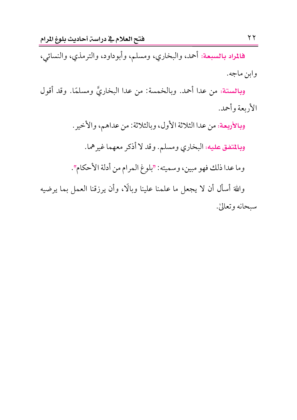 وما عدا ذلك فهو مبين، وسميته: «بلوغ المرام من أدلة الأحكام».