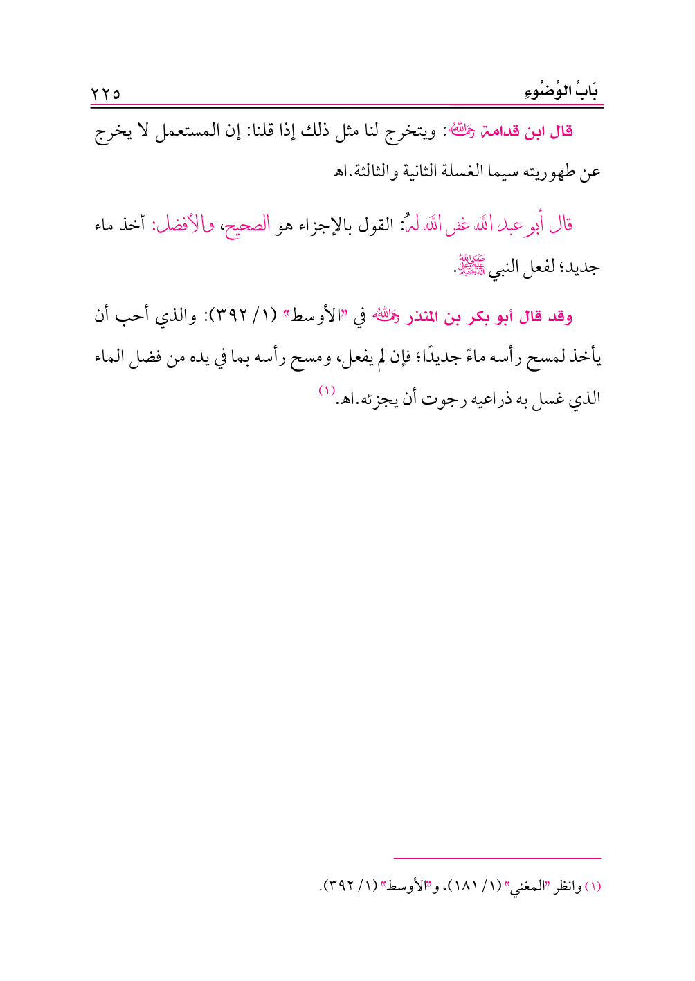 (¬١) وانظر «المغني» (١/ ١٨١)، و «الأوسط» (١/ ٣٩٢).
