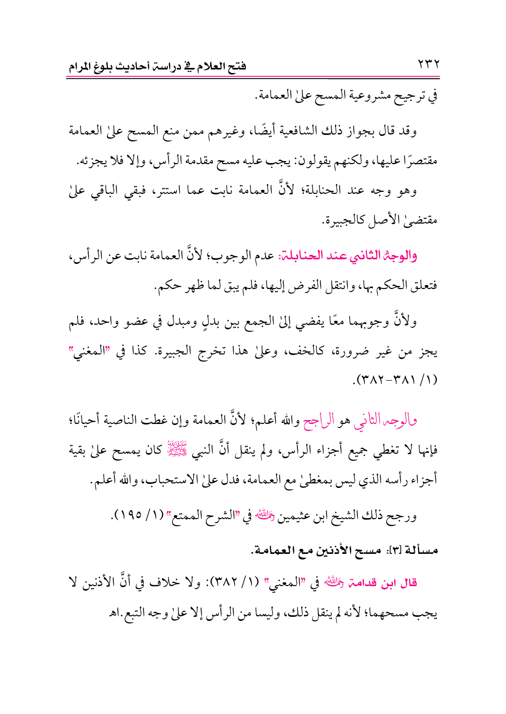 مسألة [٣]: مسح الأذنين مع العمامة.