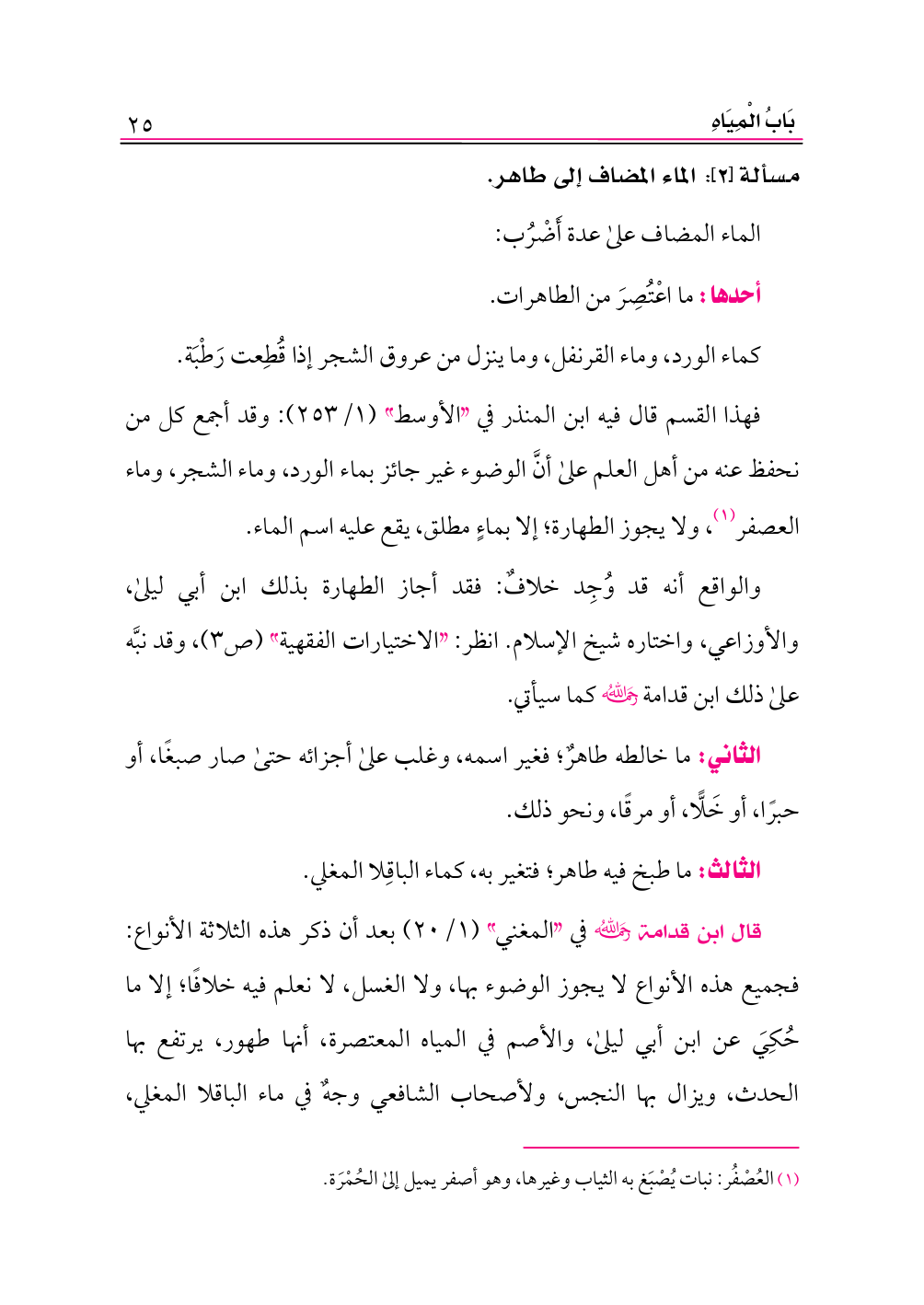 مسألة [٢]: الماء المضاف إلى طاهر.