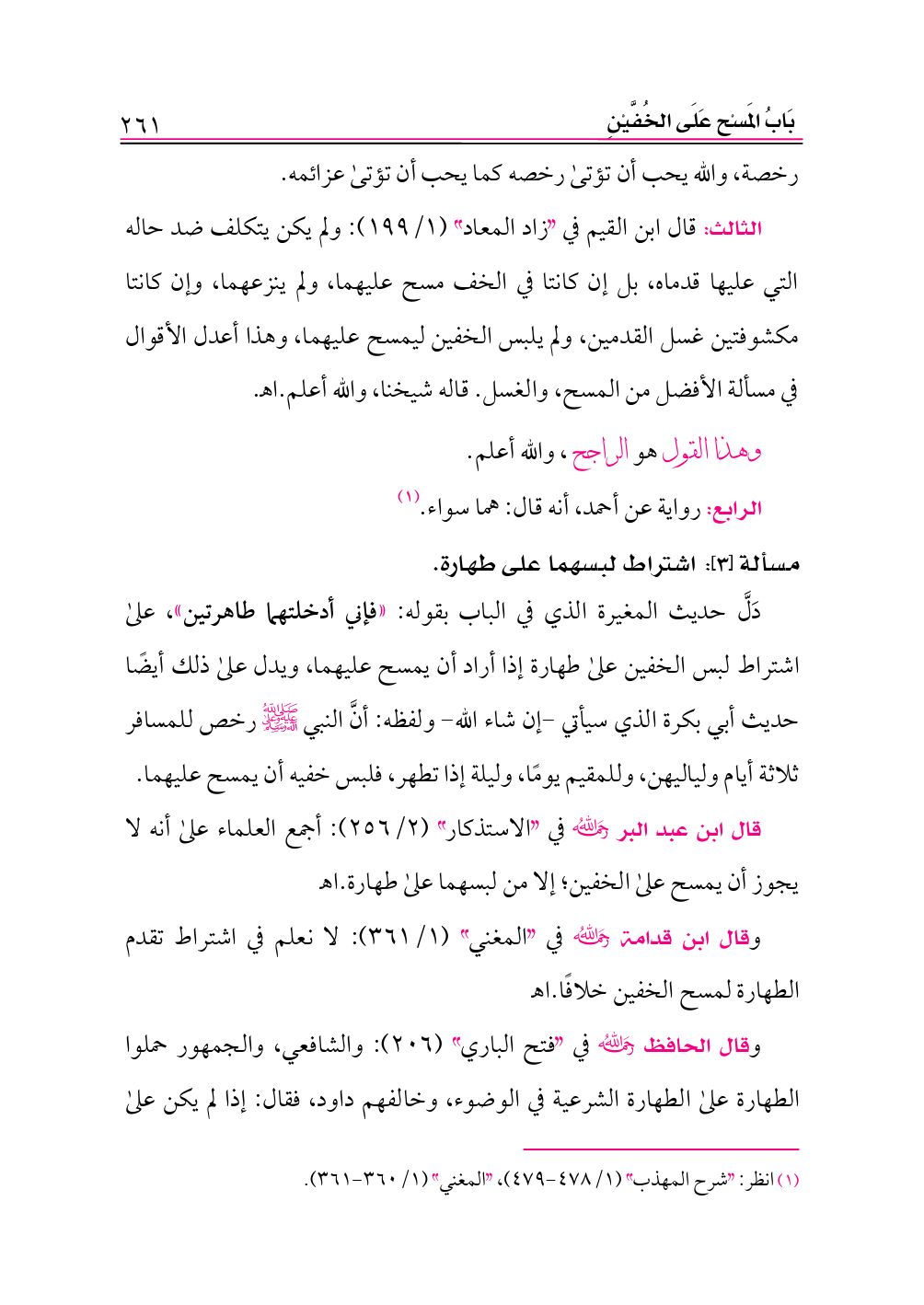 (¬١) انظر: «شرح المهذب» (١/ ٤٧٨ - ٤٧٩)، «المغني» (١/ ٣٦٠ - ٣٦١).