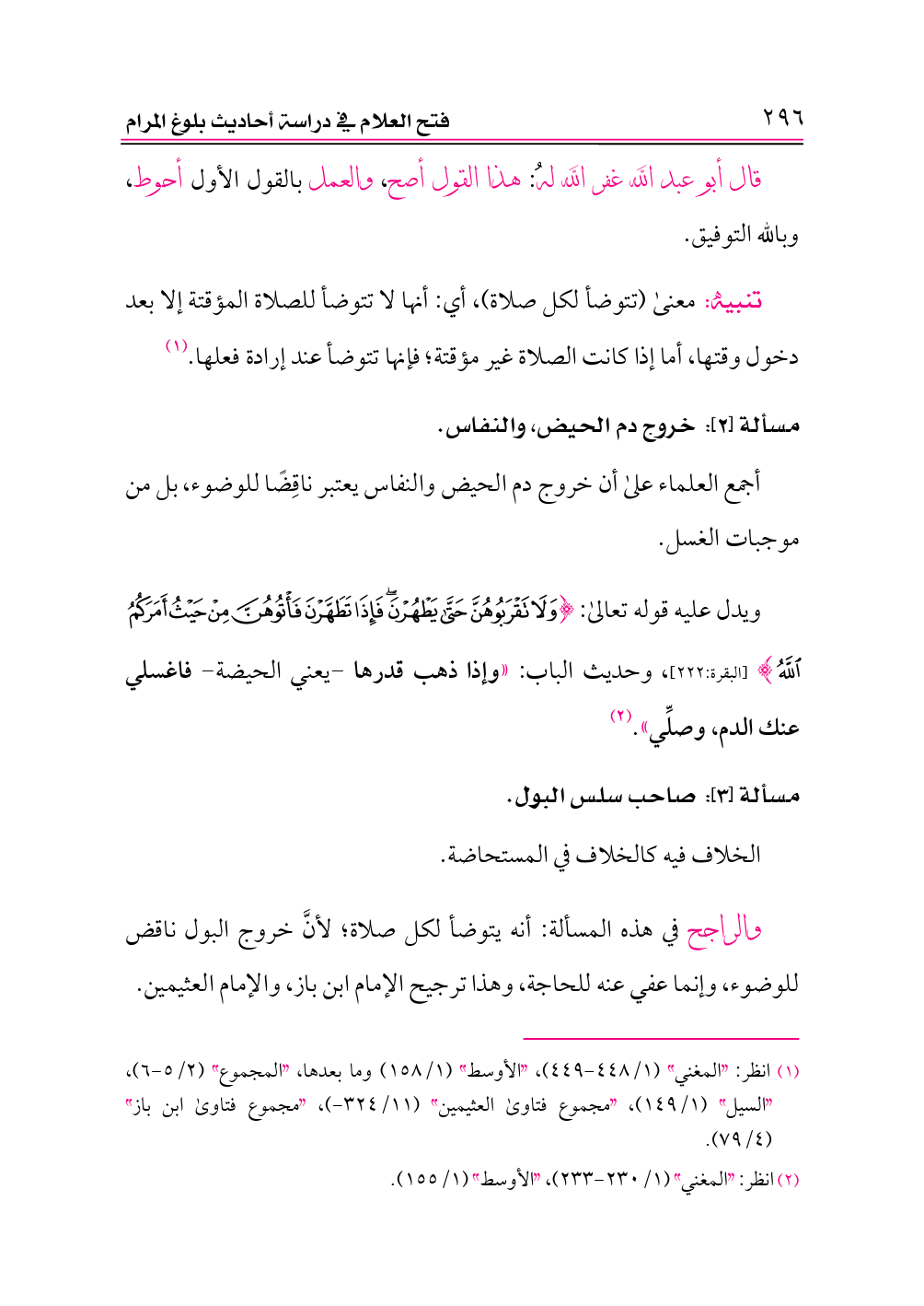 (¬١) انظر: «المغني» (١/ ٤٤٨ - ٤٤٩)، «الأوسط» (١/ ١٥٨) وما بعدها، «المجموع» (٢/ ٥ - ٦)، «السيل» (١/ ١٤٩)، «مجموع فتاوى العثيمين» (١١/ ٣٢٤ - )، «مجموع فتاوى ابن باز» (٤/ ٧٩).
