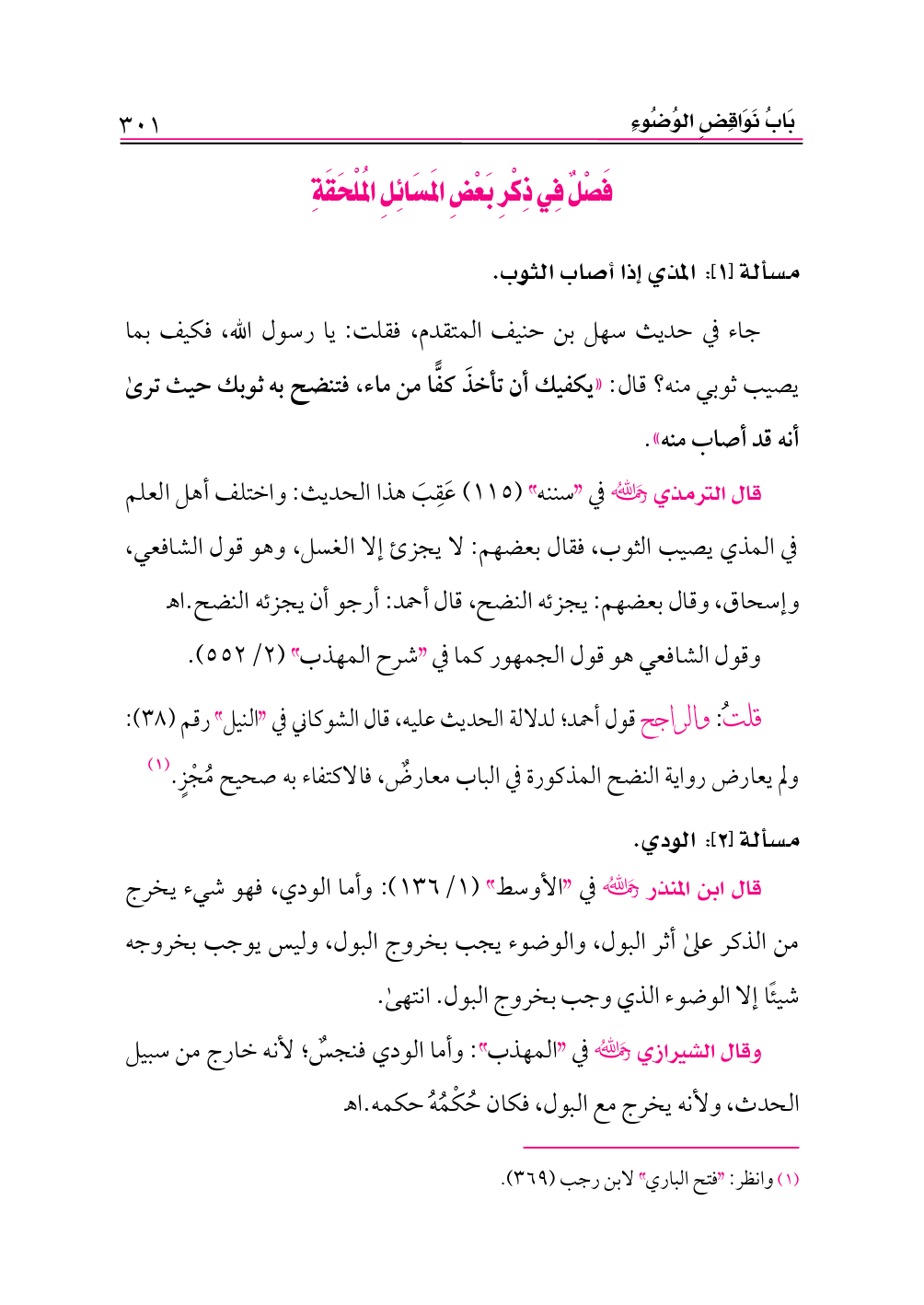 فَصْلٌ فِي ذِكْرِ بَعْضِ المَسَائِلِ المُلْحَقَةِ